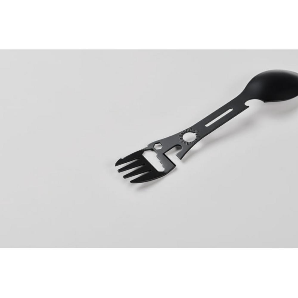 Narzędzie wielofunkcyjne MUTOOL będzie znakomitym upominkiem dla ekip serwisowych, handlowców w trasie, studentów geodezji, a także miłośników kempingu. Klient użyje łyżki i widelca na przerwie śniadaniowej, noża do przecięcia sznurka, a kluczy do szybkiej regulacji śrub — jedna rzecz, wiele rozwiązań! Czarny kolor obudowy nadaje mu elegancki, nowoczesny charakter, co podnosi jego wartość estetyczną oraz sprawia, że prezentuje się profesjonalnie przy każdym zastosowaniu.