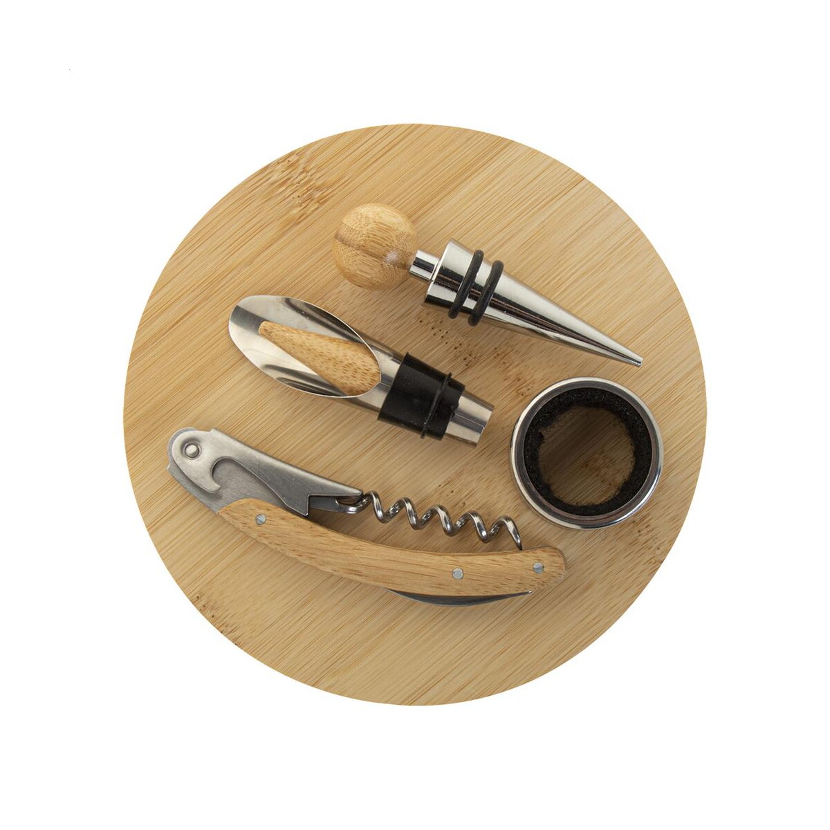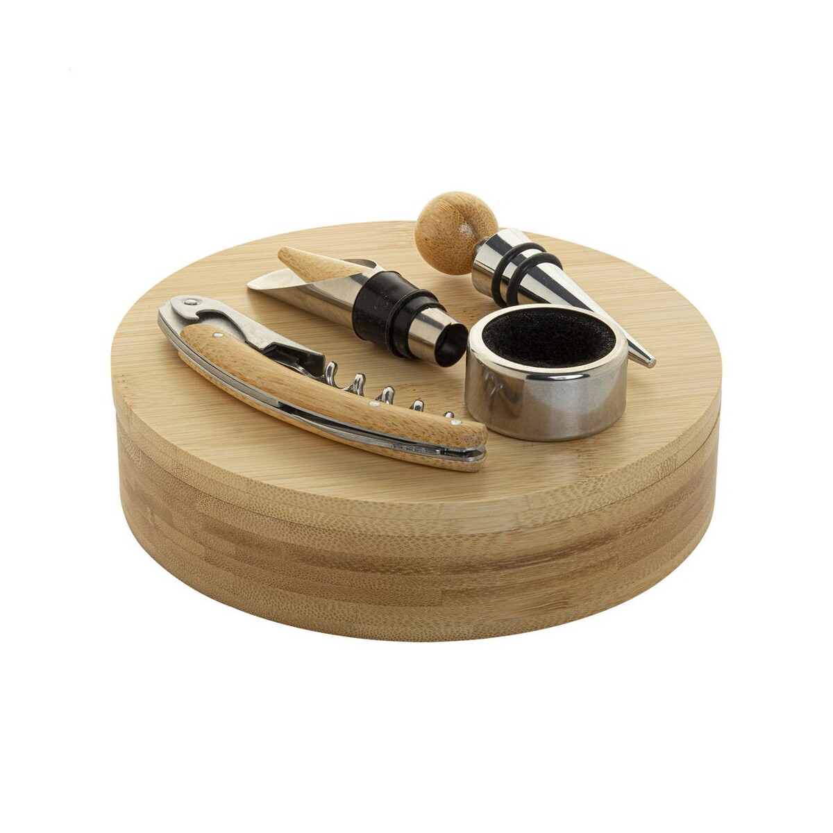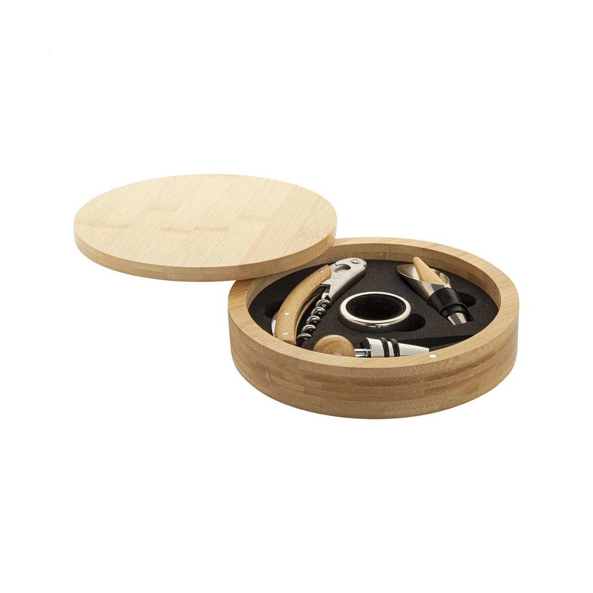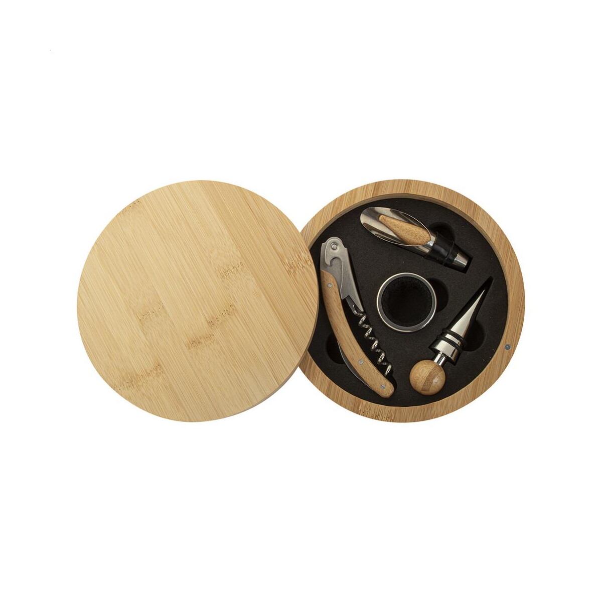 Nebbiolo zestaw do wina to elegancki, 4-elementowy komplet z naturalnego bambusa, który wnosi powiew luksusu do każdego degustacyjnego rytuału. W okrągłym pudełku o wymiarach ø160×40 mm i wadze 430 g znajdziesz perfekcyjnie dopasowany korkociąg, ociekacz, lejek oraz zatyczkę, wszystkie wykonane z odpornej na korozję stali nierdzewnej. Połączenie ciepłego drewna i metalicznego połysku tworzy harmonijną całość, która przyciąga wzrok, a przede wszystkim podnosi komfort serwowania wina – to prawdziwie reklamowe arcydzieło 🙂.