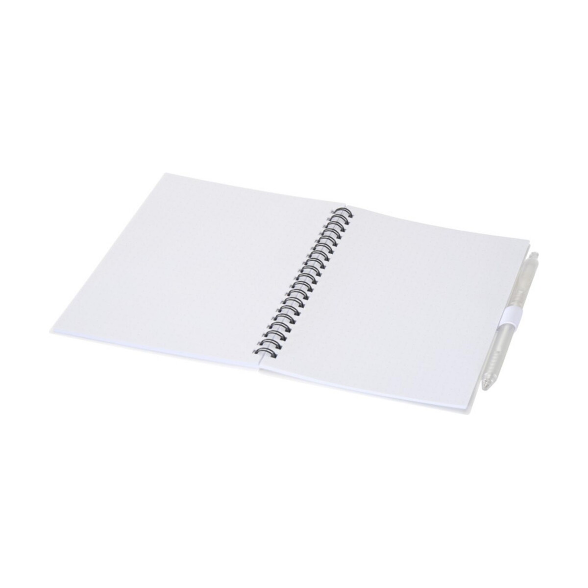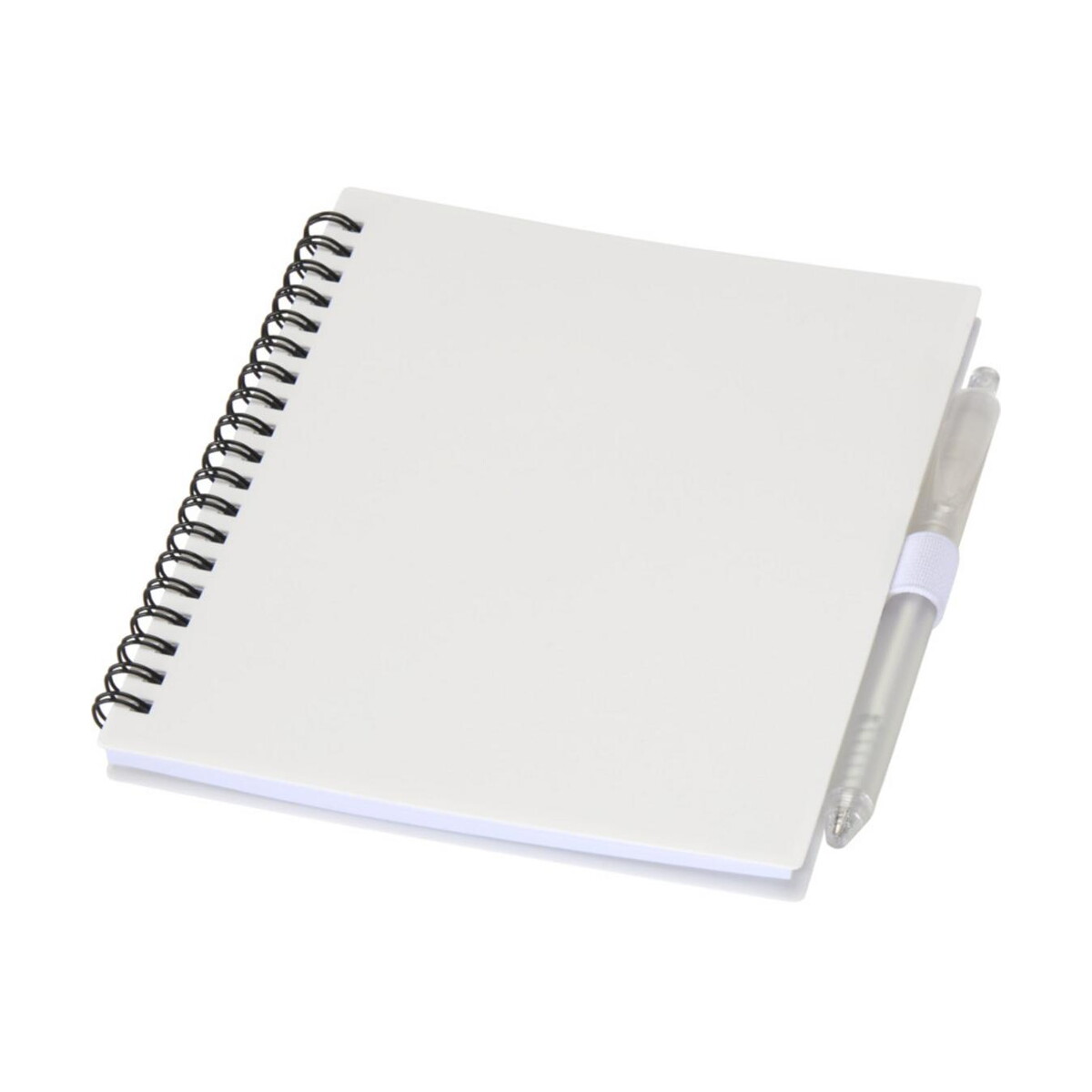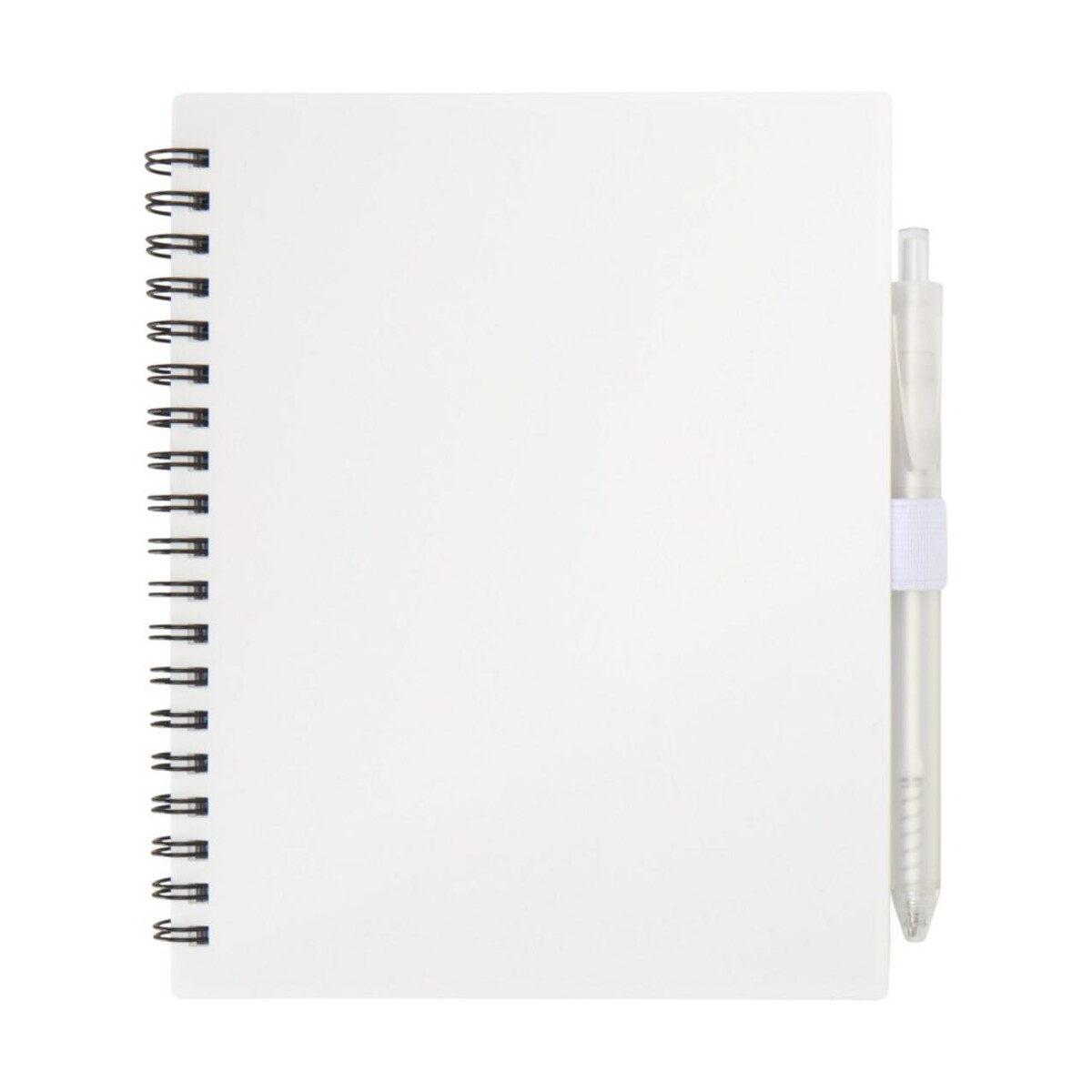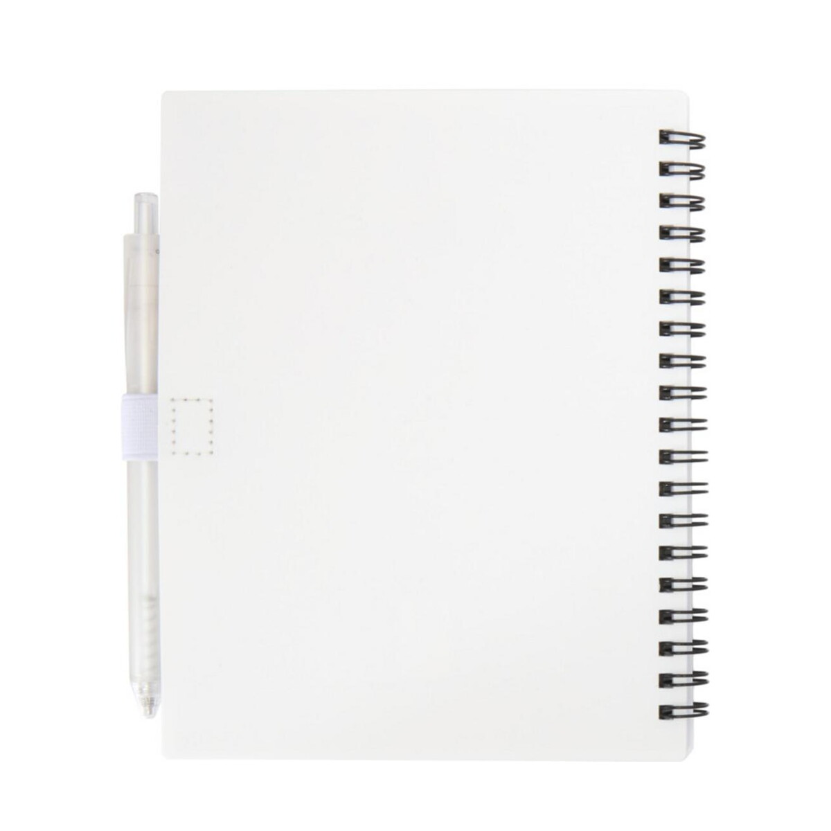 Ten zestaw jest wręcz doskonały do kampanii branży szkoleniowej, consultingowej, technologicznej czy eventowej. Notatnik posiada elegancką wsuwkę, w której pewnie spoczywa długopis, co ułatwia szybkie notowanie podczas konferencji lub spotkań online. Duża, gładka powierzchnia okładki wykonanej z Recycled PP Plastic aż prosi się o firmowe logo i trwały nadruk. Dzięki temu reklamowy charakter zestawu podkreśli wartości proekologiczne i nowoczesny wizerunek marki.