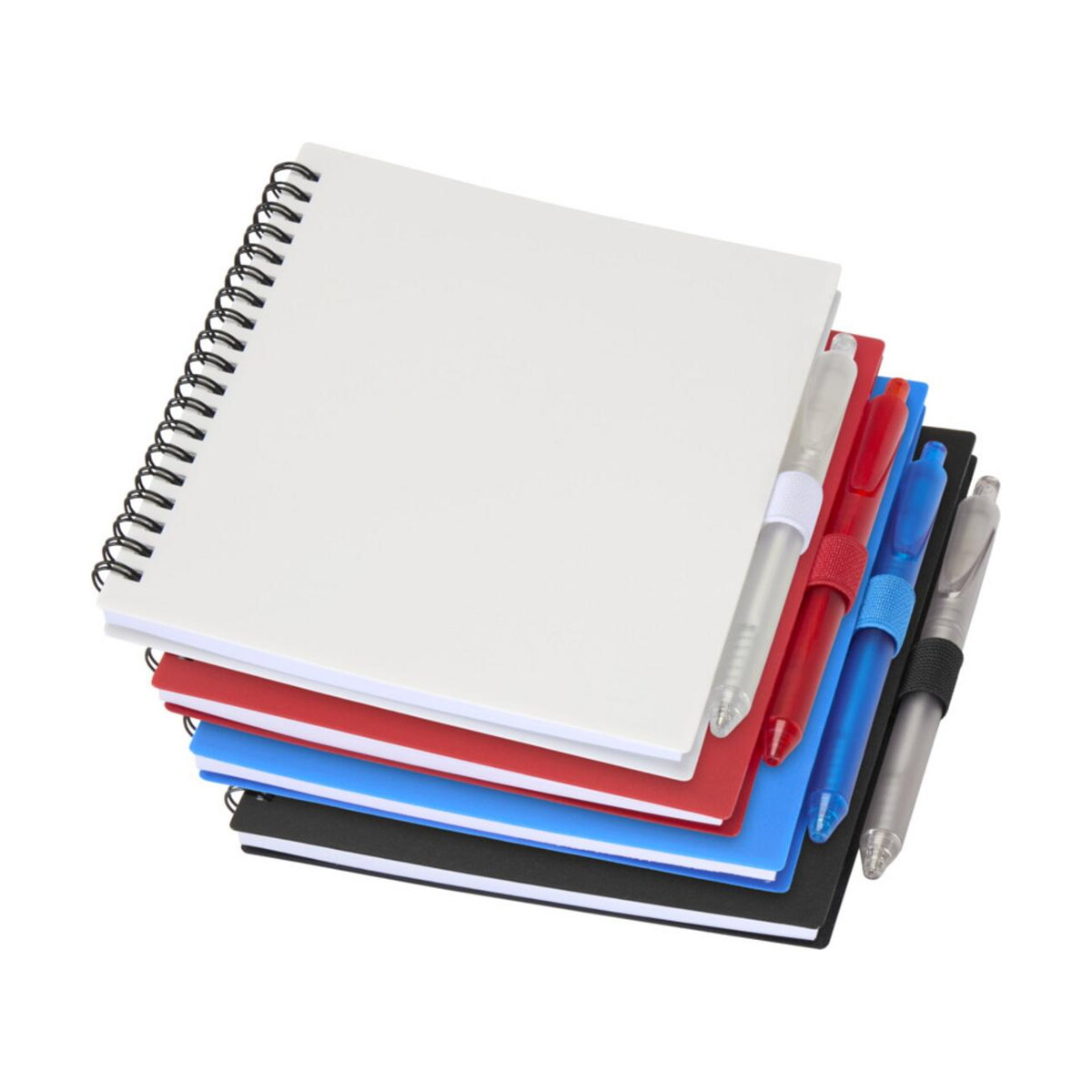 Niove zestaw notatnik w miękkiej okładce z tworzyw sztucznych pochodzących z recyklingu i długopis (niebieski tusz) sprawdzi się także w sektorze HR jako upominek powitalny dla nowych pracowników, w branży kreatywnej jako szkicownik koncepcyjny oraz w edukacji do prowadzenia notatek na uczelni. Kolorystyka – czarny, biały, niebieski lub czerwony – pozwala dopasować zestaw do identyfikacji wizualnej każdej marki. Produkt jest lekki, odporny na zachlapania i łatwy do czyszczenia, dlatego doskonale poradzi sobie w terenie, np. podczas warsztatów outdoorowych czy targów branżowych.