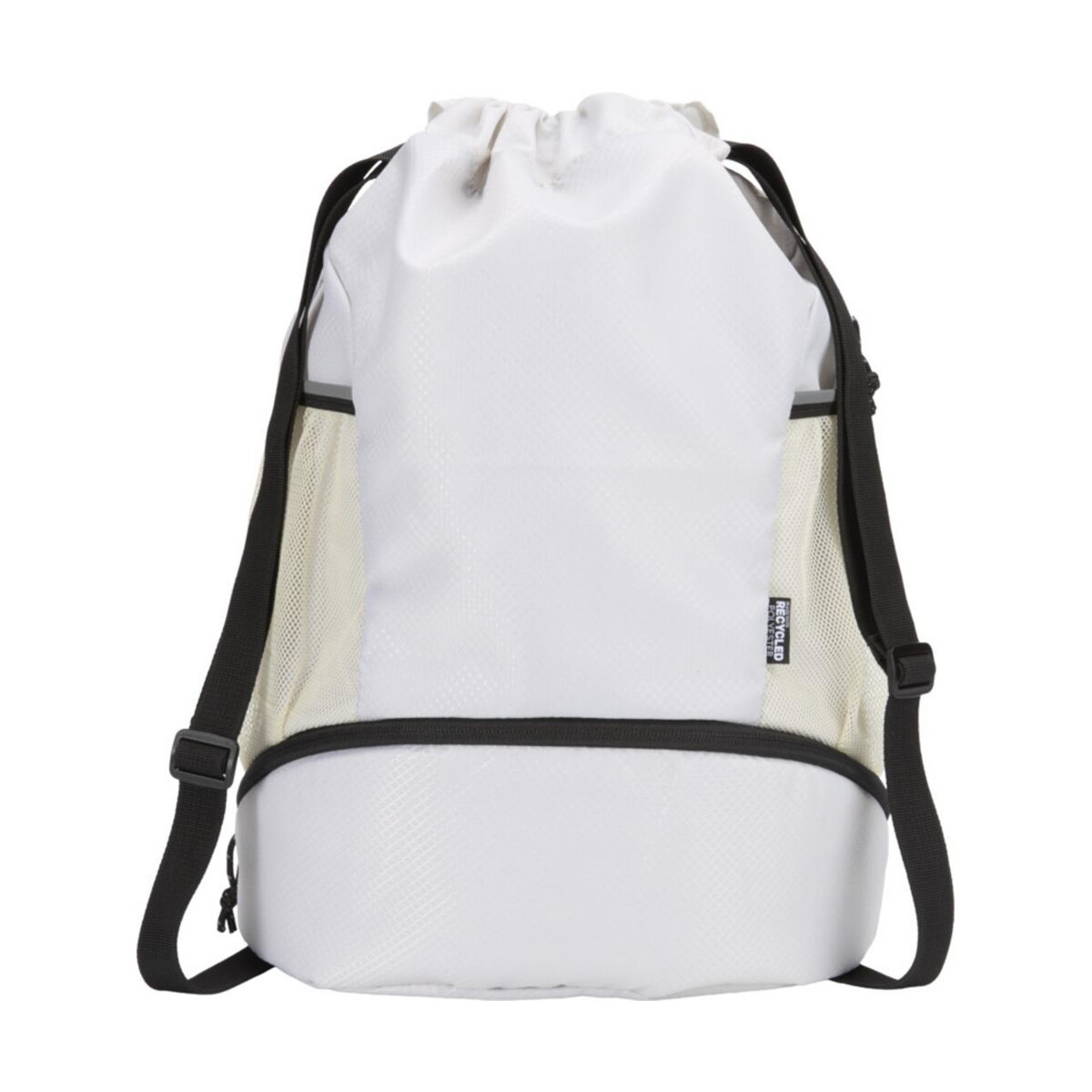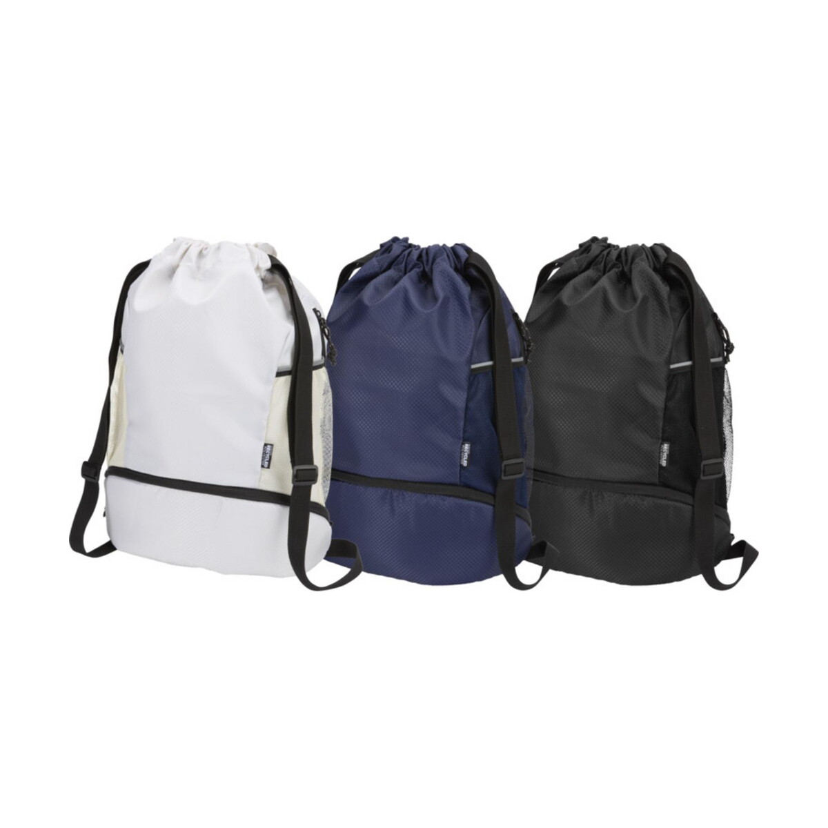 Nomad ściągana na sznurek torba sportowa z recyklingu z certyfikatem GRS o pojemności 18l z dolną komorą okaże się doskonałym towarzyszem zarówno ucznia, studenta, jak i zapracowanego profesjonalisty, który po pracy pędzi na trening 🚴♂️. Sprawdzi się w drodze na siłownię, w weekendowy wypad za miasto czy na firmowy piknik, udowadniając, że ekologiczna funkcjonalność może iść w parze z efektowną promocją marki.