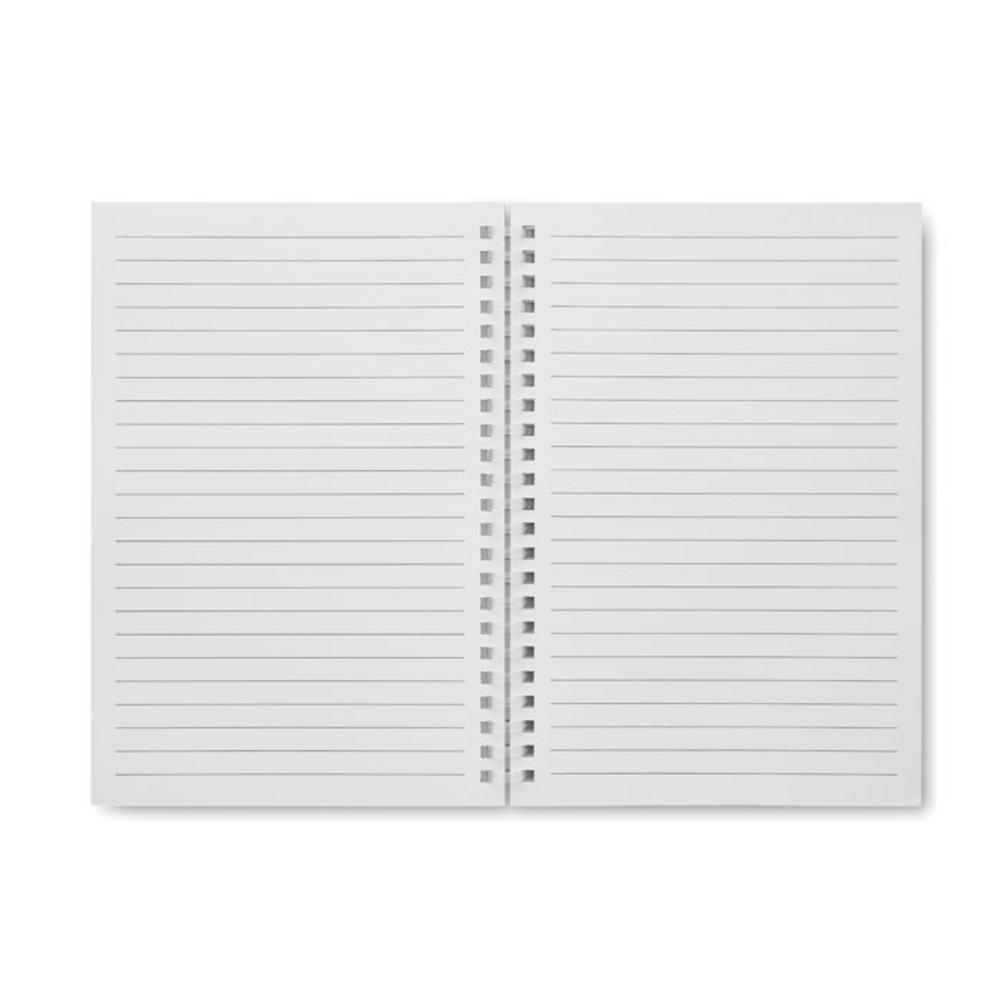 Na okładce pozostawiono optymalną przestrzeń na logo oraz wyrazisty nadruk, dzięki czemu Notatnik A5 z kartonu z recykli RECARNOTE staje się praktycznym nośnikiem przekazu reklamowego. To ekologiczny gadżet, który wyróżni Cię na tle konkurencji i podkreśli dbałość o środowisko. Wytrzymała spirala sprawia, że strony łatwo się obracają, a miękka okładka chroni zapiski przed zniszczeniem, jednocześnie nadając całemu wyrobowi lekkości.