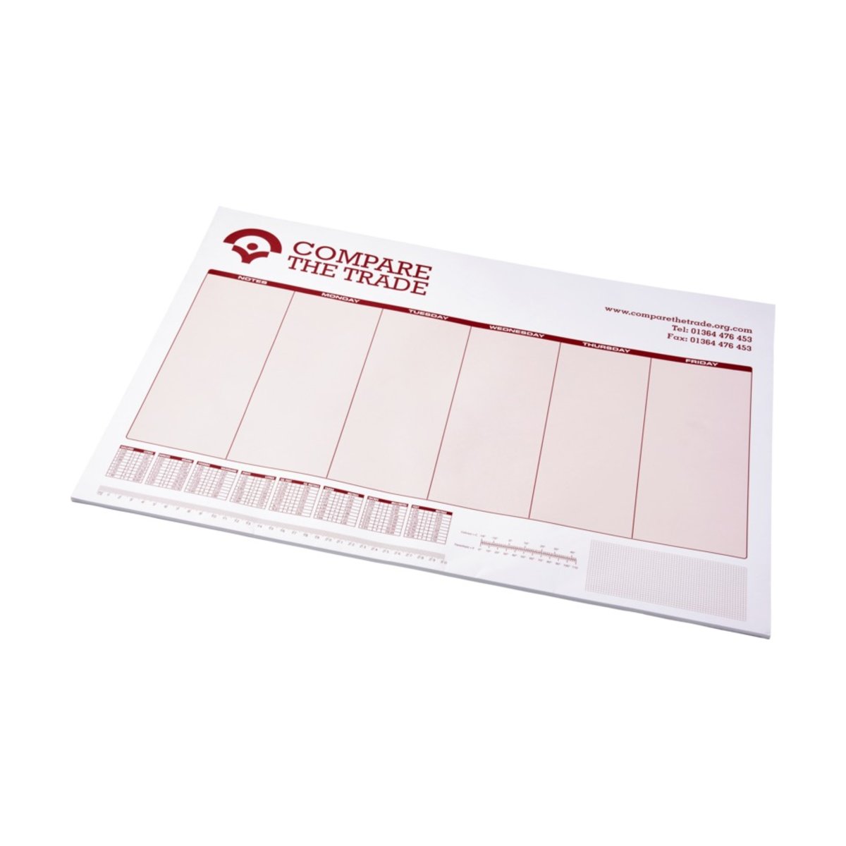 Dzięki nadrukowi offsetowemu lub cyfrowemu każda kartka może stać się mobilnym nośnikiem Twojej marki – wystarczy umieścić logo, hasło lub grafikę. Sprawia to, że Notatnik Desk-Mate® w formacie A3 staje się niezwykle praktycznym gadżetem promocyjnym dla firm z branży szkoleniowej, konferencyjnej, edukacyjnej, a także dla biur projektowych, agencji reklamowych czy deweloperów nieruchomości, którzy często potrzebują dużego formatu do prezentacji koncepcji i rysunków technicznych.