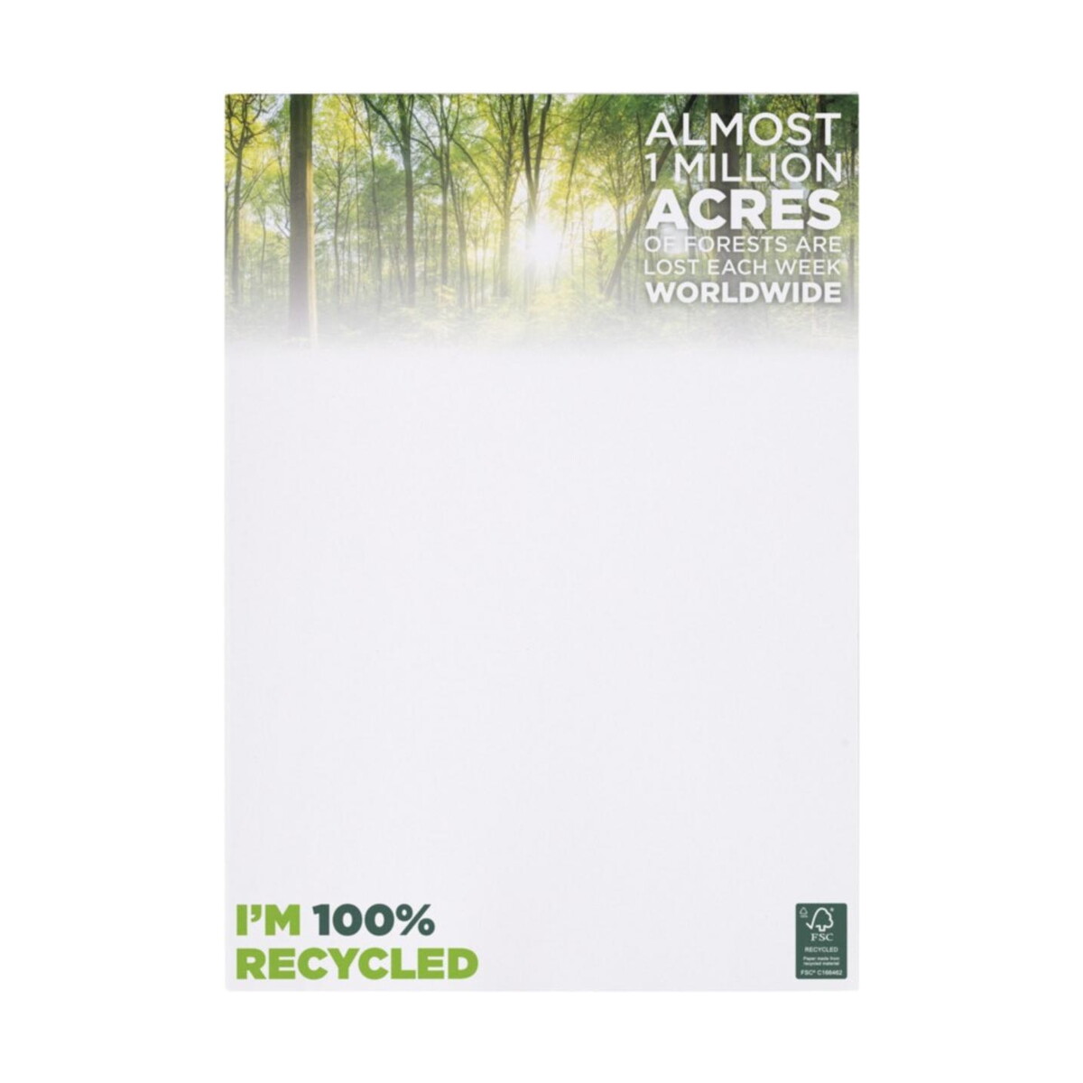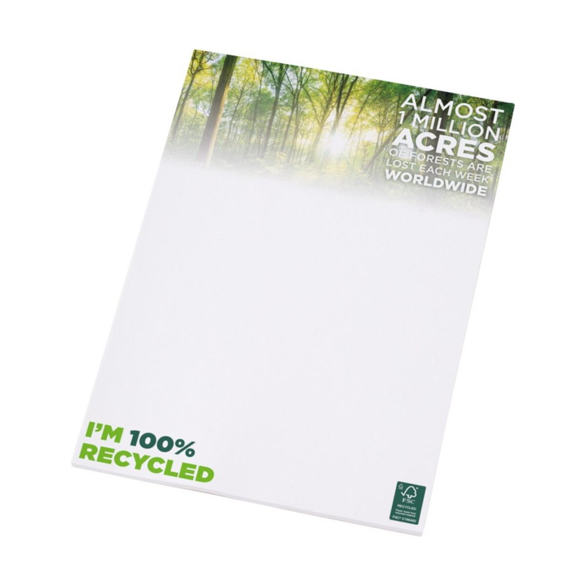 Notatnik Desk-Mate® w formacie A4 z materiałów z recyklingu to znakomity wybór, gdy poszukujesz funkcjonalnego upominku reklamowego 🙂 Jego standardowa wersja kryje w sobie 50 arkuszy papieru z recyklingu o gramaturze 80 g/m², na których można wykonać kolorowy nadruk na każdej stronie. Dzięki temu nośnik przekazu staje się długotrwałym ambasadorem marki – każde spojrzenie na kartkę przypomina o Twojej firmie i buduje jej rozpoznawalność. Dodatkowo do wyboru masz trzy objętości: 25, 50 lub 100 arkuszy, co pozwala idealnie dopasować budżet do potrzeb kampanii.