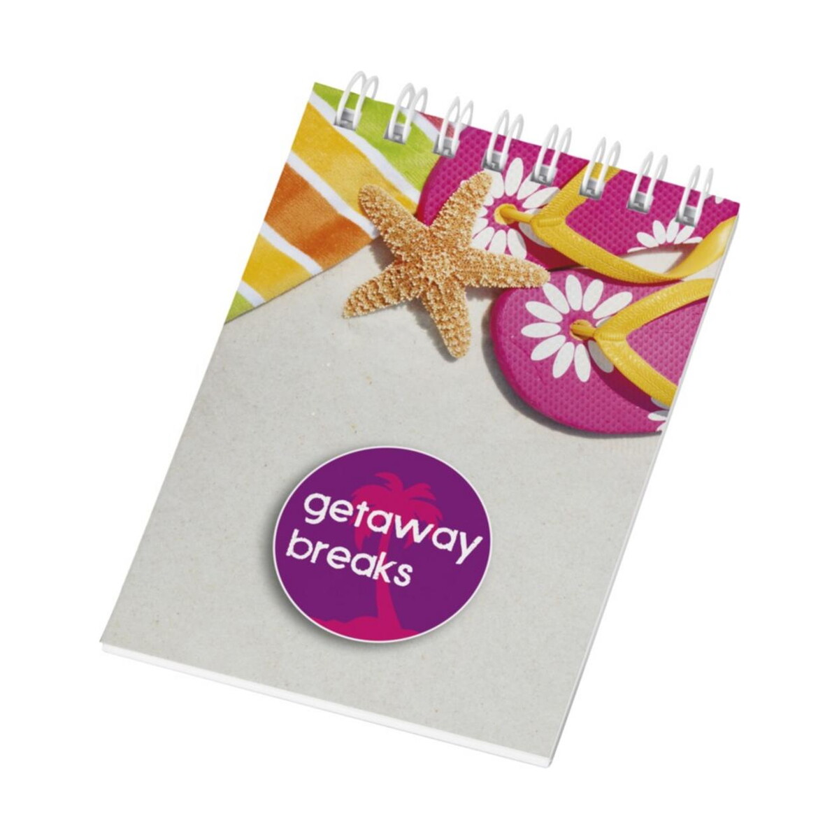 Notatnik Desk-Mate® w formacie A7 z przedziałką to znakomite połączenie praktyczności i elegancji, które sprawdzi się w każdej kampanii reklamowej. Kompaktowy wymiar 10,5 × 0,5 × 7,4 cm i lekka waga 36 g sprawiają, że ten poręczny gadżet mieści się zarówno w kieszeni marynarki, jak i w firmowej teczce. Solidna, lakierowana okładka 250 g/m² w duecie z 50 arkuszami papieru 80 g/m² gwarantuje trwałość oraz komfort pisania gdziekolwiek jesteś. Dzięki spiralnemu bindowaniu notatki otwierają się na płasko, a biała lub czarna przedziałka pozwala rozdzielić tematy, projekty albo listy zadań 🙂