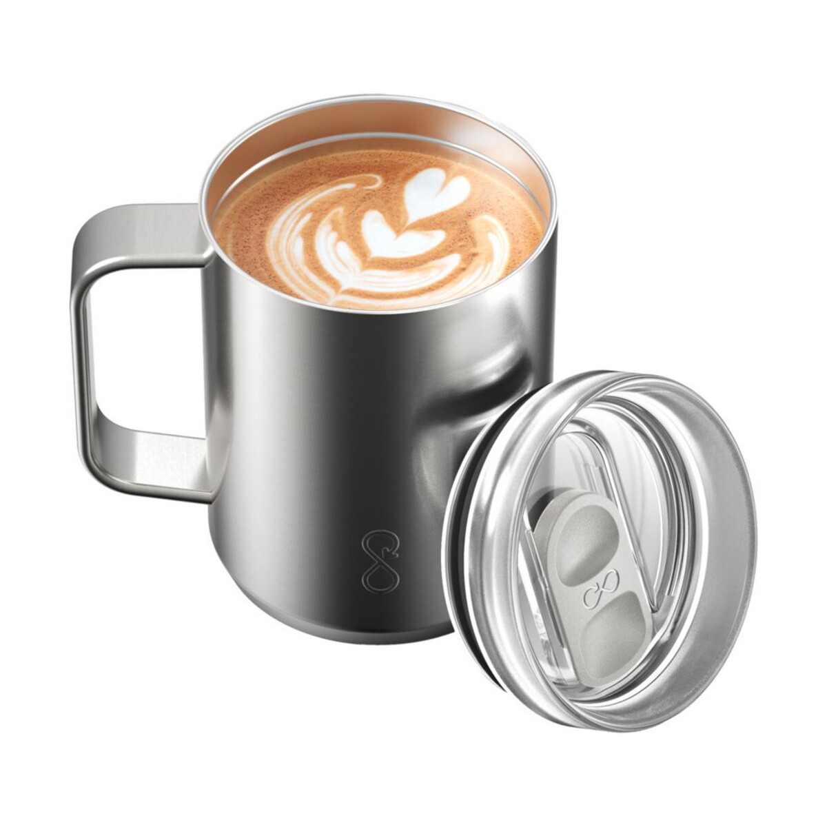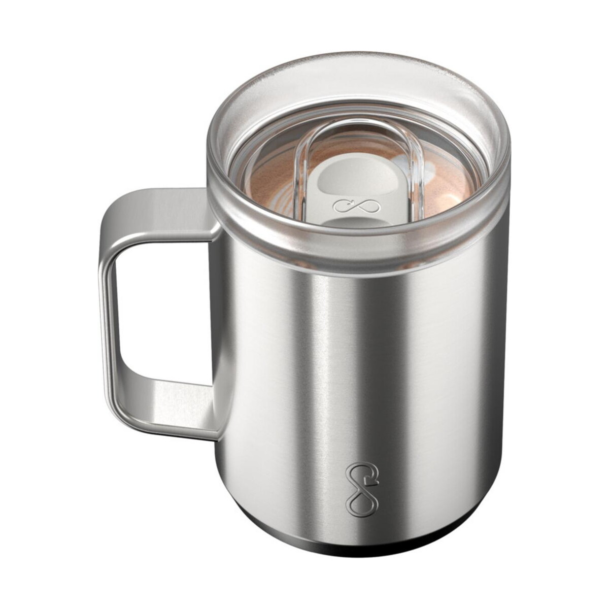Produkt wykonany jest w 90 % z recyklingowanej stali nierdzewnej, a eleganckie wykończenia w kolorach czarnym lub szarym podkreślają jego nowoczesny charakter. Zamykana wieczkiem konstrukcja zapobiega przeciekaniu, dzięki czemu napój pozostaje bezpieczny w biurowej teczce czy podczas jazdy na rowerze 😊. Zapakowany w pudełko z kartonu z recyklingu – gotowy do wręczenia jako prestiżowy upominek dla Twojej firmy.