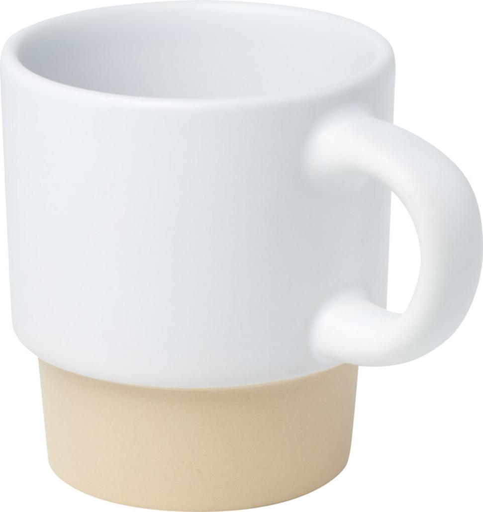 Dzięki gładkiej powierzchni doskonale sprawdzi się pod logo oraz efektowny nadruk, czyniąc go wyjątkowym nośnikiem treści reklamowych. To stylowy gadżet firmowy, który wyróżni markę podczas targów, konferencji lub degustacji kawy. Olympia kubek do espresso z glinianym dnem, z możliwością układania w stosy, 130 ml zapakowany jest w eleganckie pudełko upominkowe z kartonu pochodzącego z recyklingu, co podkreśla ekologiczne wartości dla Twojej firmy.