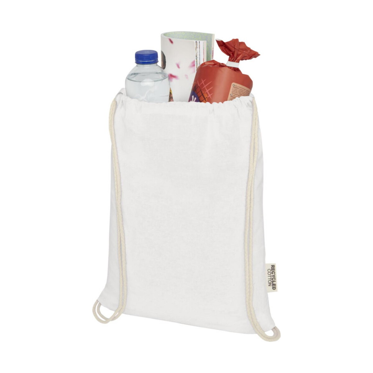 Napisz pierwszą opinię o „Oregon ściągana sznurkiem torba na zakupy z bawełny z recyklingu z certyfikatem GRS 140 g/m²”