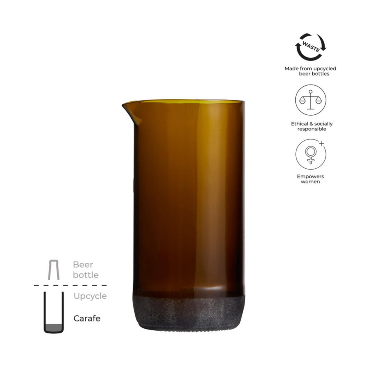 Originalhome karafka na wodę to znakomity, ekologiczny gadżet, który przyciągnie wzrok klientów oraz gości i sprawi, że każde spotkanie biznesowe nabierze wyjątkowego charakteru. Wykonana w 100 % z przetworzonych butelek po piwie, o pojemności 430 ml, stanowi wyraz troski o środowisko i nowoczesny design. Ciepły, brązowy kolor szkła oraz subtelna linia nadają jej elegancji, a kompaktowe wymiary 7,3 × 15 cm (Ø 7,3 cm) i waga 500 g sprawiają, że jest łatwa w transporcie oraz stabilnie leży na każdym stole. 😊