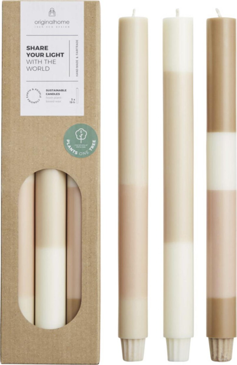 Originalhome świece warstwowe z wapienia — zestaw 3 sztuk to prawdziwie ekologiczny gadżet promocyjny, który wprowadza do każdej przestrzeni barwną elegancję i pozytywną energię 😊. Ręcznie formowane z roślinnego palm kernel wax, całkowicie wolnego od parafiny, zachwycają żywą, warstwową paletą kolorów. Knot ze 100 % bawełny gwarantuje czyste, równomierne spalanie przez 18–20 h, a każdy zestaw o wymiarach 30 × 2,5 cm waży 500 g, co czyni go poręcznym, a zarazem wyrazistym akcentem dekoracyjnym. Świece są bezzapachowe, dlatego sprawdzą się zarówno w biurze, hotelu, jak i w domu.