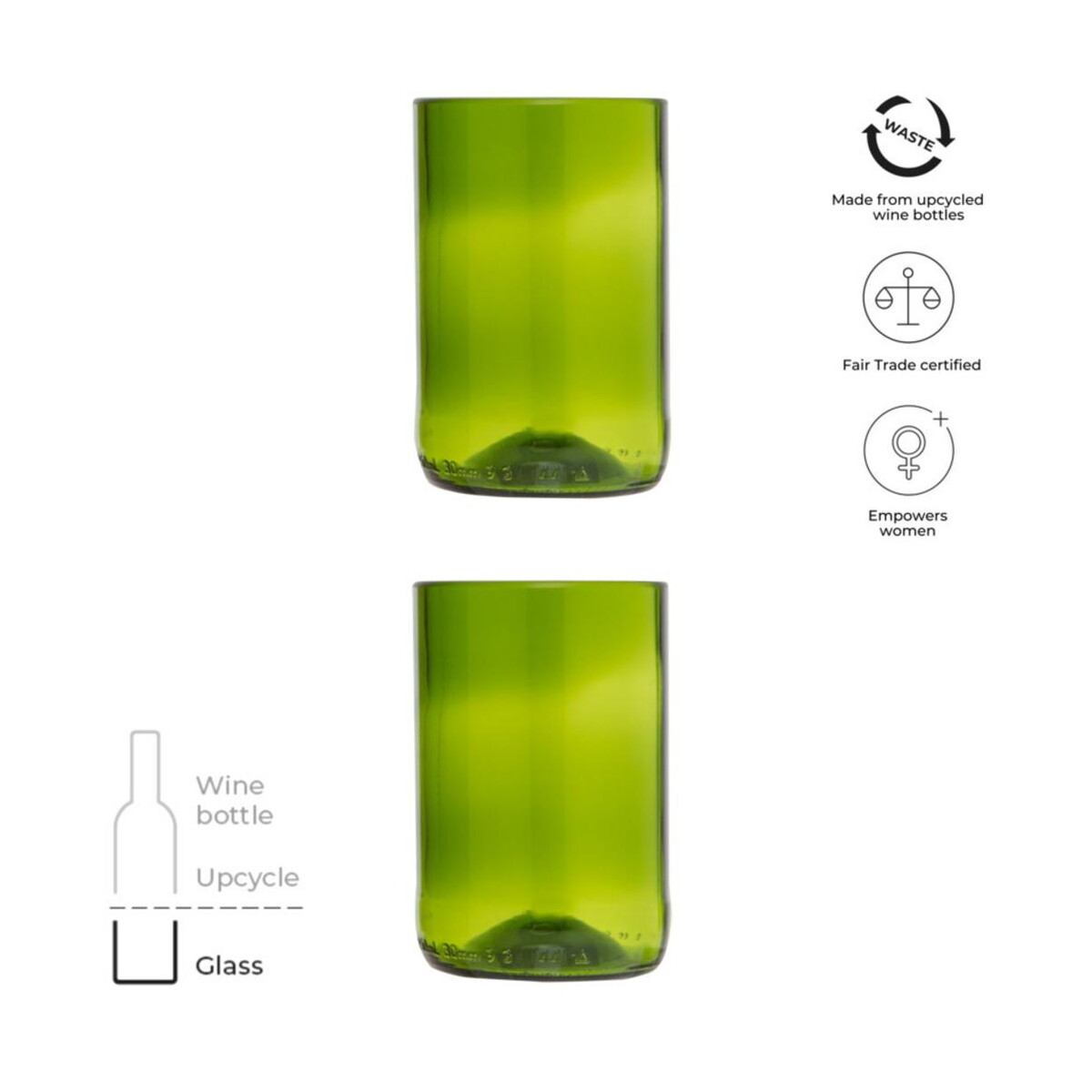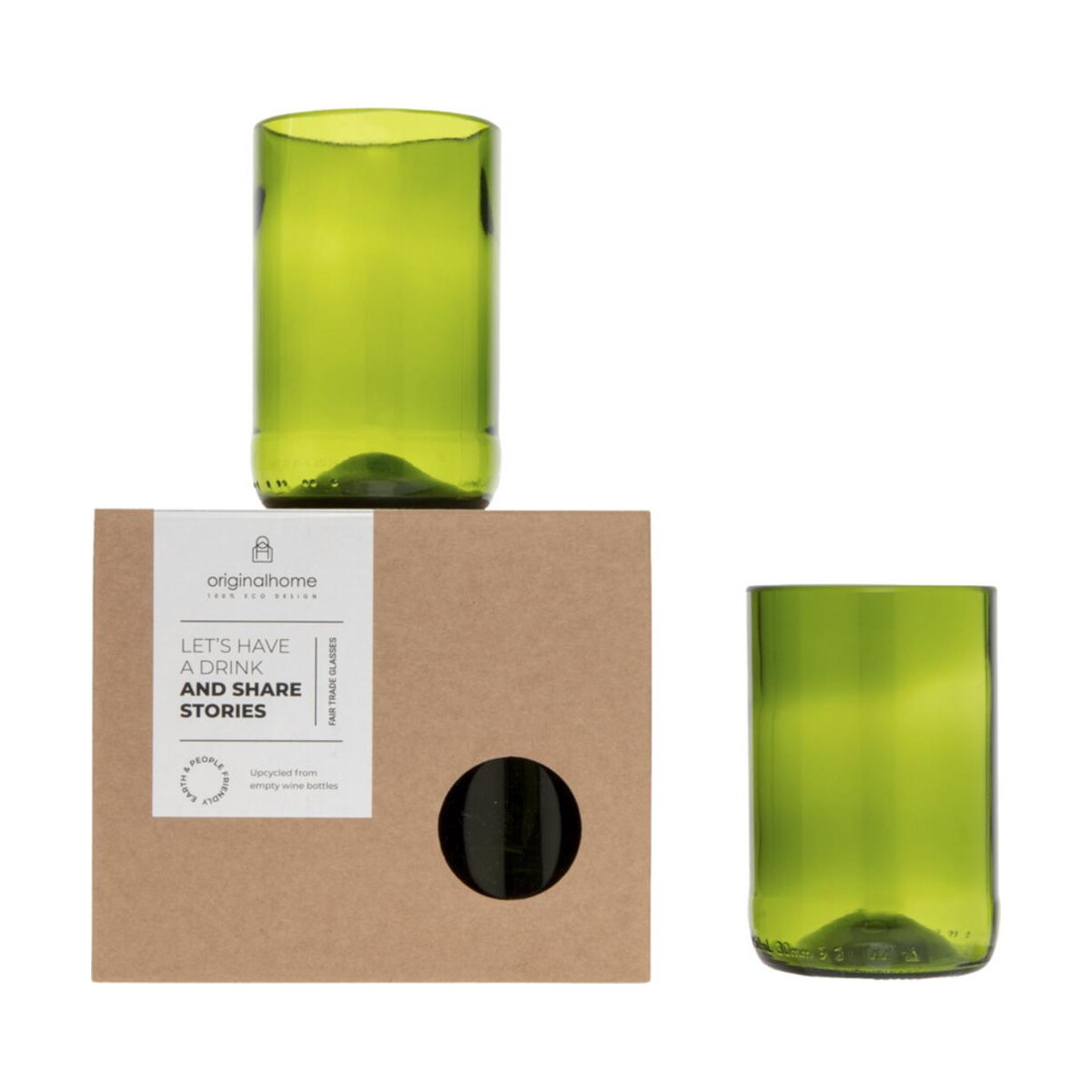 Originalhome zestaw szklany to znakomity wybór dla marek stawiających na zrównoważony rozwój i wyrafinowaną estetykę. Składający się z dwóch szklanek o pojemności 280 ml, wykonanych z szkła z recyklingu po butelkach wina, zestaw zachwyca subtelnym, zielonym odcieniem i przyjemnie gładką fakturą. Dzięki kompaktowym wymiarom 14 × 8 × 7 × Ø 7 cm i niewielkiej wadze 440 g jest komfortowy w codziennym użytkowaniu, a jednocześnie prezentuje się efektownie na stole. Świetna, równa krawędź oraz pogrubione dno sprawiają, że szklanki są solidne i odporne na uszkodzenia, co gwarantuje długie lata satysfakcji z użytkowania 😊.
