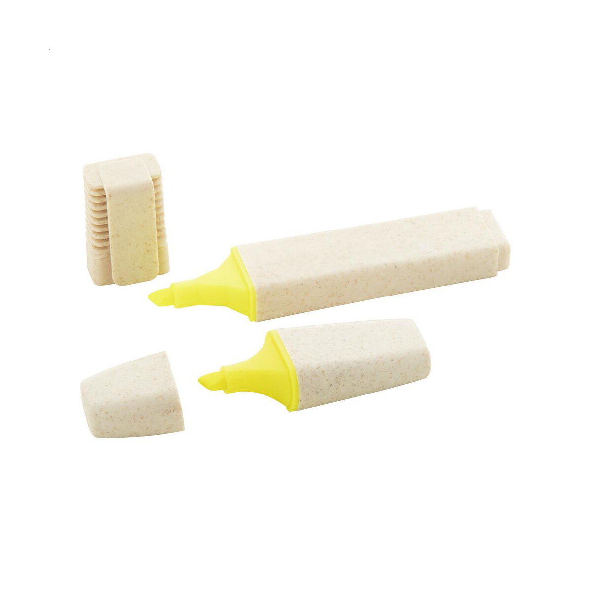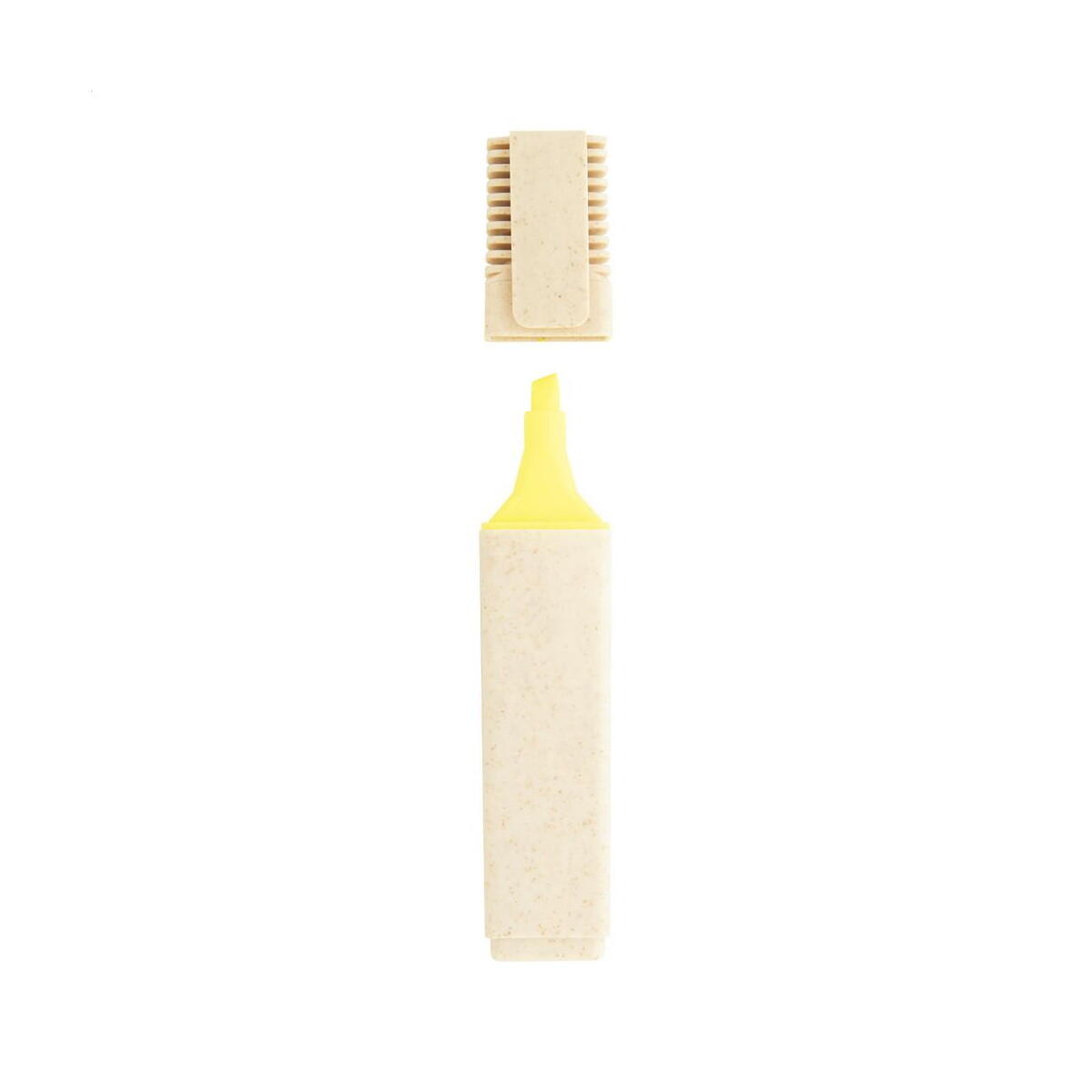 Korpus wykonany z innowacyjnego połączenia materiał: słoma pszeniczna, plastik, dostępny w subtelnym, naturalnym odcieniu lub soczystym żółtym, stanowi idealną bazę pod wyrazisty nadruk. Na powierzchni bez problemu umieścisz swoje logo, czyniąc z niego praktyczny gadżet reklamowy. Znakowanie pozostaje odporne na ścieranie, dzięki czemu nazwa Twojej marki będzie widoczna przez długi czas.