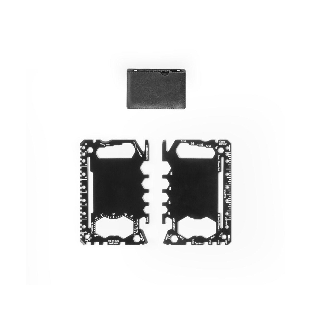 PEEBLES. Karta wielofunkcyjna ze stali nierdzewnej z 20 funkcjami to znakomity gadżet, który łączy w sobie kompaktowe wymiary karty kredytowej (80 x 53 mm) z potęgą aż dwudziestu narzędzi ukrytych w wytrzymałej stali nierdzewnej. Dzięki niej zawsze masz pod ręką otwieracz do butelek, komplet śrubokrętów, wielorozmiarowe klucze imbusowe, sprytne ostrze do listów i folii, obcinak, skrobak do zszywek oraz funkcjonalną linijkę. Całość waży zaledwie 31 g, a elegancka czarna powierzchnia świetnie eksponuje logo na matowym tle. 🙂