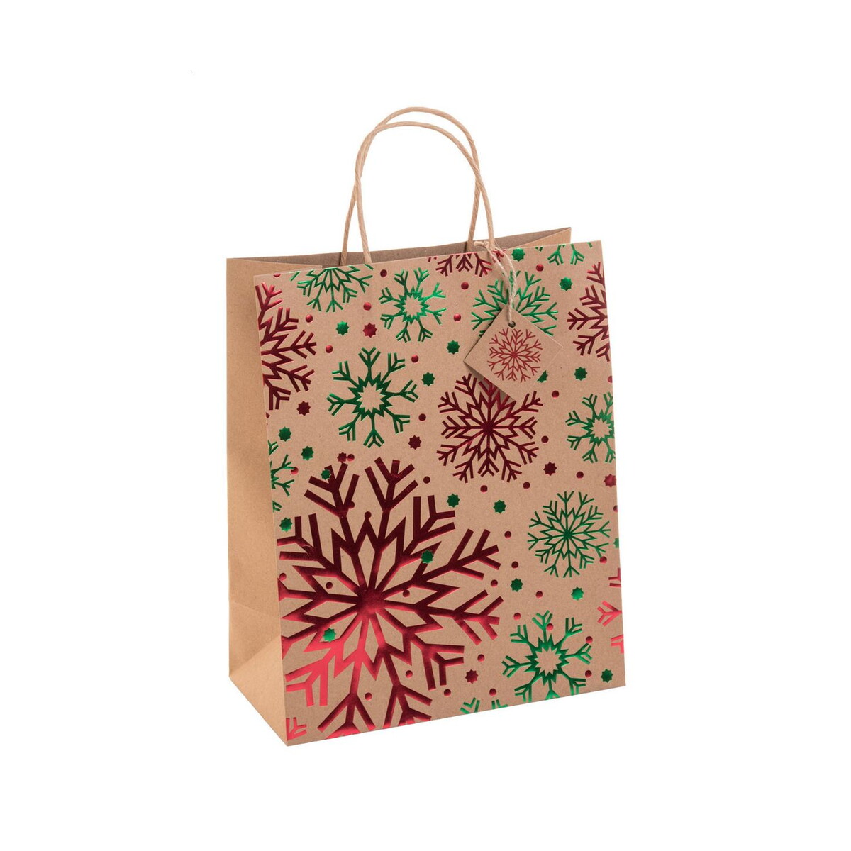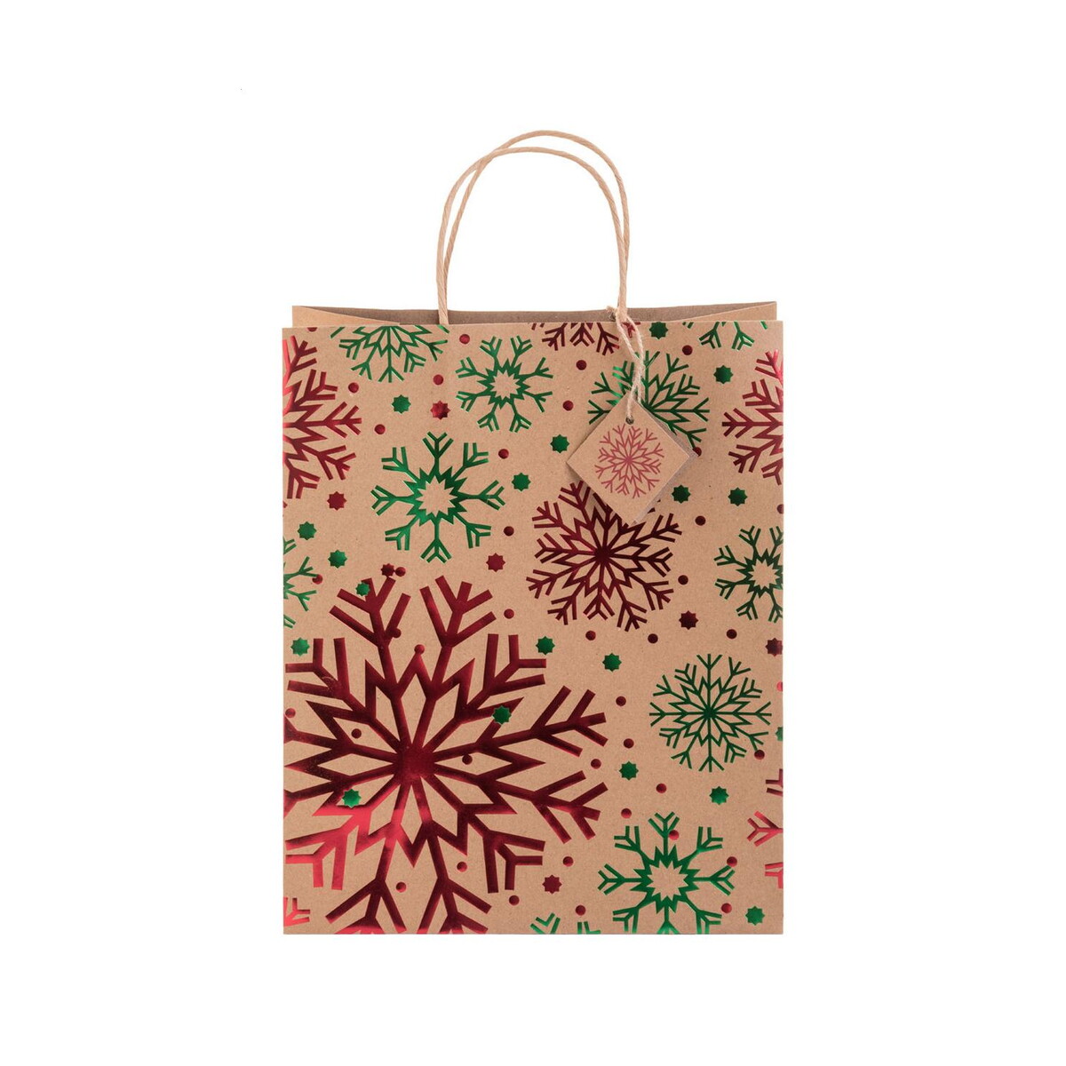 Pekkola L Torba na prezenty świąteczne, duża to znakomity sposób, aby podkreślić magię świąt w każdej kampanii promocyjnej. Wykonana z papieru pochodzącego z recyklingu o gramaturze 140 g/m², zachwyca eleganckim, bożonarodzeniowym wzorem wytłoczonym folią oraz wytrzymałymi, skręconymi uchwytami. Dzięki temu stanowi nie tylko atrakcyjny, lecz także ekologiczny gadżet reklamowy 🎄. Jej kluczowe atuty to: Wymiary: 265 × 330 × 135 mm, Waga: 68,75 g, Materiał: papier z recyklingu, 140 g/m² oraz Kolory: wielokolorowy. Na zawieszce i bocznych ściankach można umieścić wyrazisty nadruk lub logo, co sprawi, że każdy upominek stanie się wizytówką dla Twojej firmy.