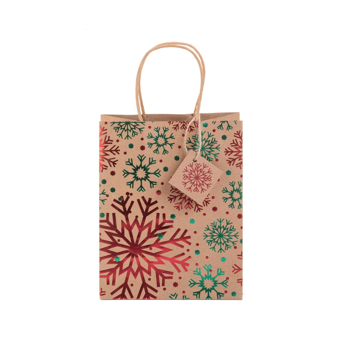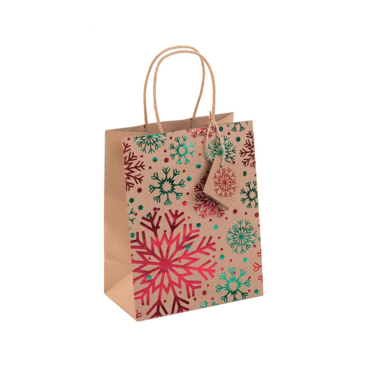Pekkola S Torba na prezenty świąteczne, mała to znakomity sposób, aby wprowadzić bożonarodzeniową atmosferę do każdej kampanii promocyjnej. Wykonana z papieru z recyklingu 140 g/m², zdobiona połyskującym, foliowym motywem świątecznym, przyciąga wzrok i podkreśla ekologiczne wartości marki. Dzięki możliwości umieszczenia logo w formie wysokiej jakości nadruku staje się nie tylko estetycznym opakowaniem, ale również praktycznym gadżetem reklamowym 🛍️.