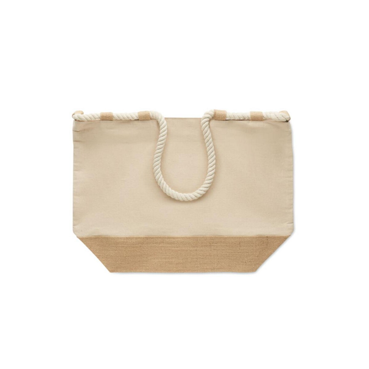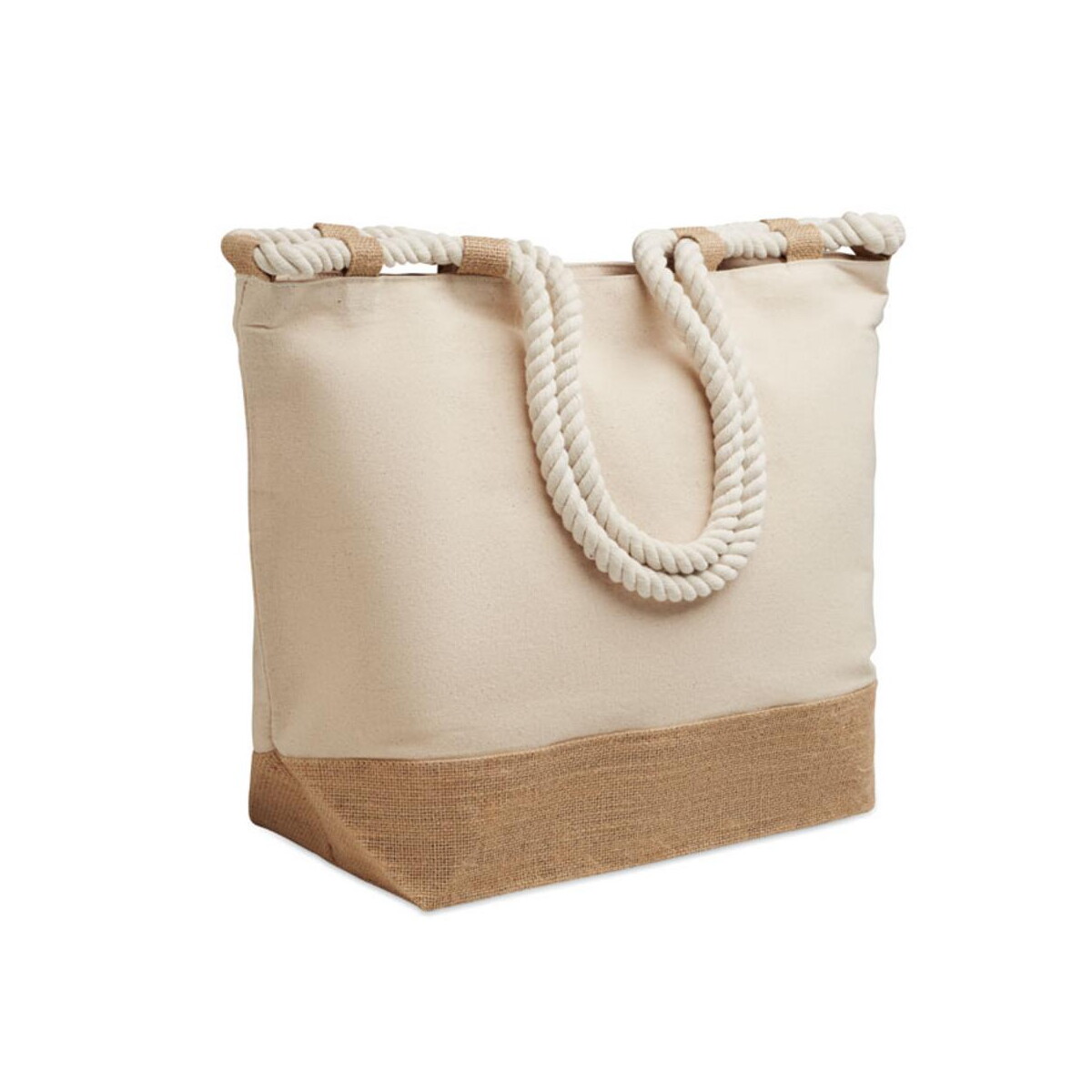 Płócienna torba plażowa MAKENKE to prawdziwy hit letnich i całorocznych kampanii 🌞. Wykonana z grubej, naturalnej bawełny 280 g/m² w połączeniu z elegancką jutą, zachwyca wytrzymałością oraz ekologicznym charakterem. Jej przestronne wymiary 50 × 17,5 × 34 cm i lekka waga 0,360 kg sprawiają, że noszenie plażowych akcesoriów, zakupów czy materiałów promocyjnych staje się czystą przyjemnością. Sznurkowe uchwyty układają się wygodnie w dłoni, a praktyczny zamek błyskawiczny chroni zawartość przed piaskiem i deszczem. Dodatkowe 10 jutowych pętli pozwala przytroczyć ręcznik, kapelusz lub butelkę z wodą 👜.