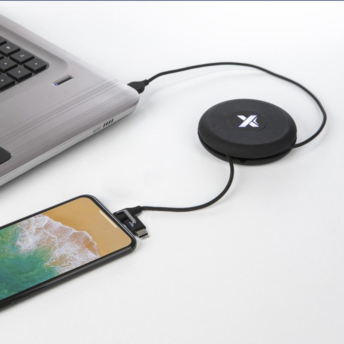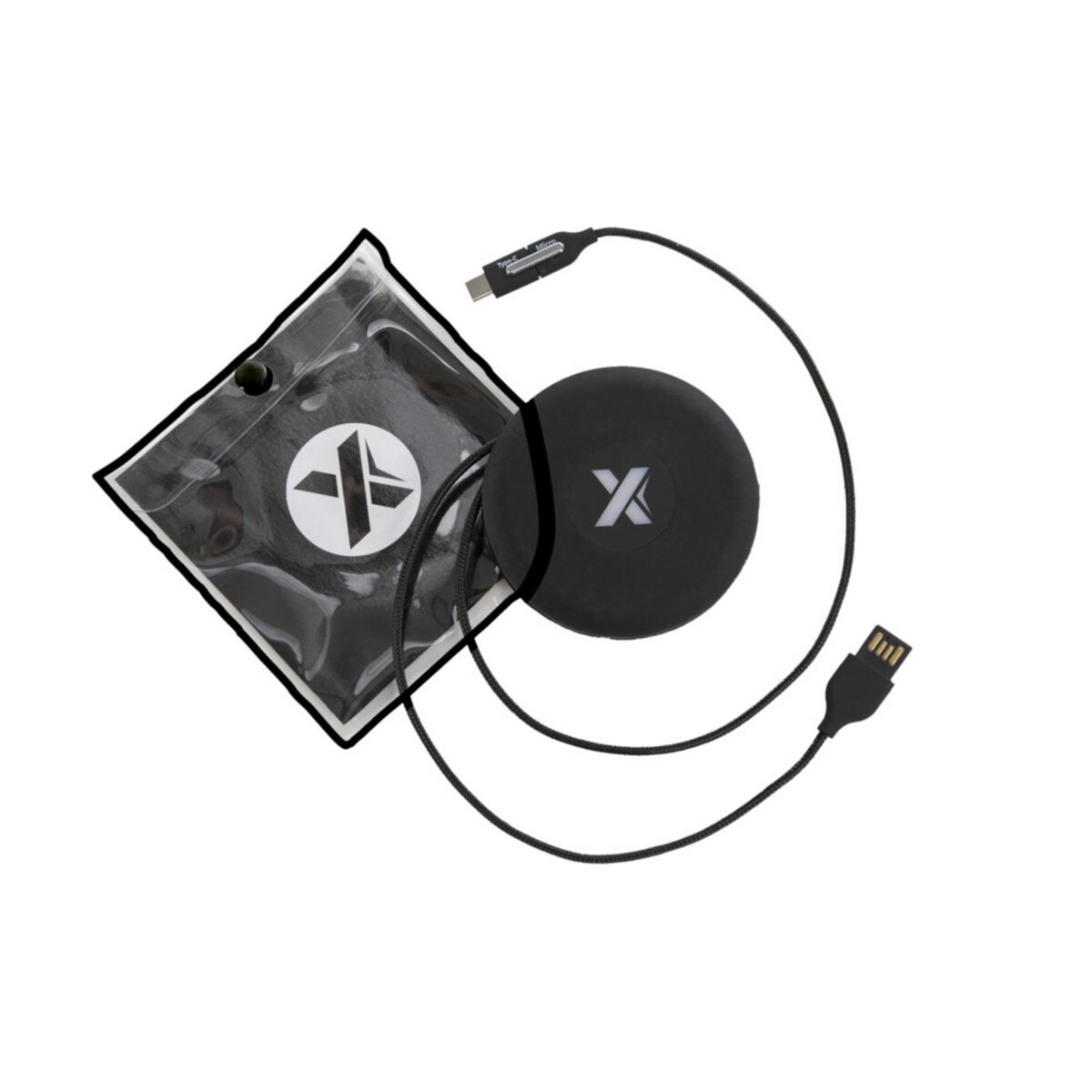 Podróżny podświetlany kabel SCX.design C18 to nowatorski gadżet, który łączy w sobie funkcjonalność, design oraz potencjał promocyjny dla Twojej firmy 😊. W kompaktowej rolce o średnicy zaledwie 8 cm i wadze 54 g ukryto aż trzy złącza – USB-C, micro-USB (Android) oraz Lightning (iPhone) – dzięki czemu zawsze masz przy sobie właściwy przewód do ładowania lub synchronizacji danych. Efektowna dioda LED delikatnie podświetla kabel w trakcie pracy, przyciągając wzrok i podkreślając nadrukowane logo, co czyni ten model idealnym nośnikiem komunikatu marki. Całość zamknięta jest w elastycznej silikonowej saszetce, która zabezpiecza akcesorium w plecaku, torbie czy kieszeni bagażu podręcznego.