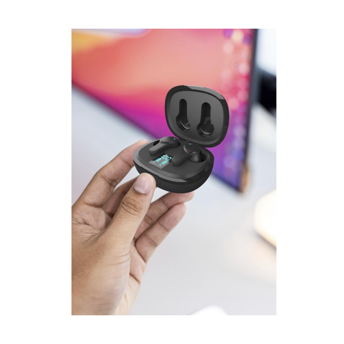Prixton TWS159 słuchawki douszne z technologią ENC i ANC to znakomity wybór, gdy szukasz wyrafinowanego sprzętu audio, który może stać się efektownym gadżetem reklamowym dla Twojej firmy. Czarny, minimalistyczny korpus wykonany z wytrzymałego plastiku ABS i PVC o wymiarach 8,2 x 11,5 x 4,6 cm oraz masie zaledwie 79 g sprawia, że słuchawki są wyjątkowo poręczne. Na obudowie z łatwością umieścisz logo lub precyzyjny nadruk, dzięki czemu Twój brand będzie towarzyszył odbiorcy każdego dnia 🎧.
