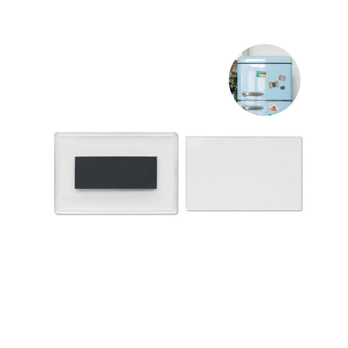 Prostokątny magnes na zdjęcie MAGME to niewielki, a zarazem niezwykle funkcjonalny gadżet promocyjny, który w mig zamieni każdą lodówkę, szafkę metalową czy tablicę magnetyczną w prywatną galerię wspomnień 😊. Wykonany z przezroczystego, trwałego materiału acrylic, mieści wkładkę fotograficzną o wymiarach 8,8 x 5,6 cm i chroni ją przed zarysowaniami oraz blaknięciem. Dzięki schludnej, minimalistycznej formie znakomicie eksponuje Twoje zdjęcie, a jednocześnie umożliwia naniesienie firmowego logo lub dowolnego nadruku, tworząc miniaturowy bilbord reklamowy w domowej przestrzeni.