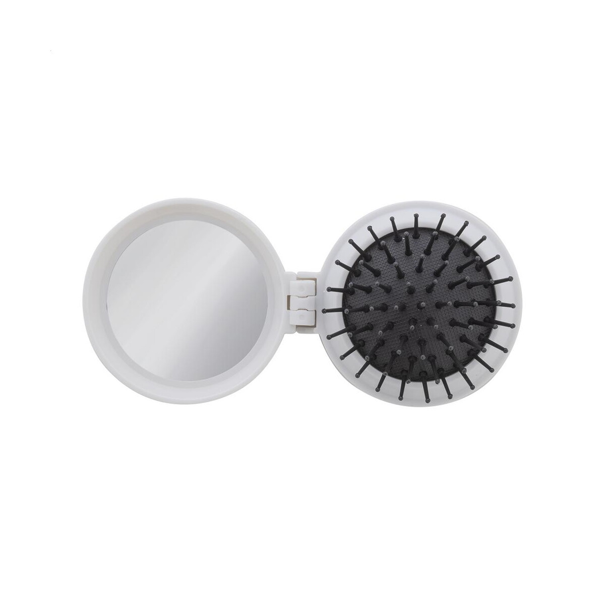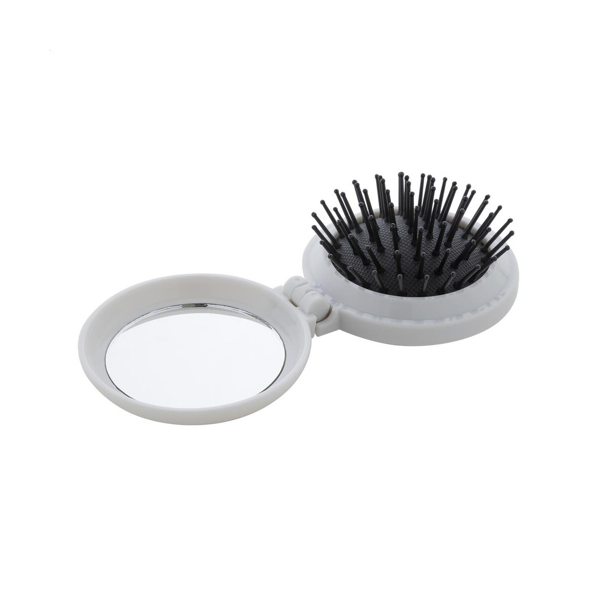 Rabrush lustro z szczotką do włosów RABS to sprytny gadżet, który łączy w sobie funkcję poręcznej szczotki i praktycznego lusterka, tworząc kompaktowy zestaw o średnicy zaledwie ø66 mm i grubości 28 mm. Dzięki składanej konstrukcji całość mieści się w kieszeni lub torebce, a lekka waga 40 g sprawia, że praktycznie nie czujesz go przy sobie. Materiał? Ekologiczny, bo wykonany z ABS z recyklingu, co doda Twojej marce nowoczesnego, proekologicznego wizerunku 🙂.