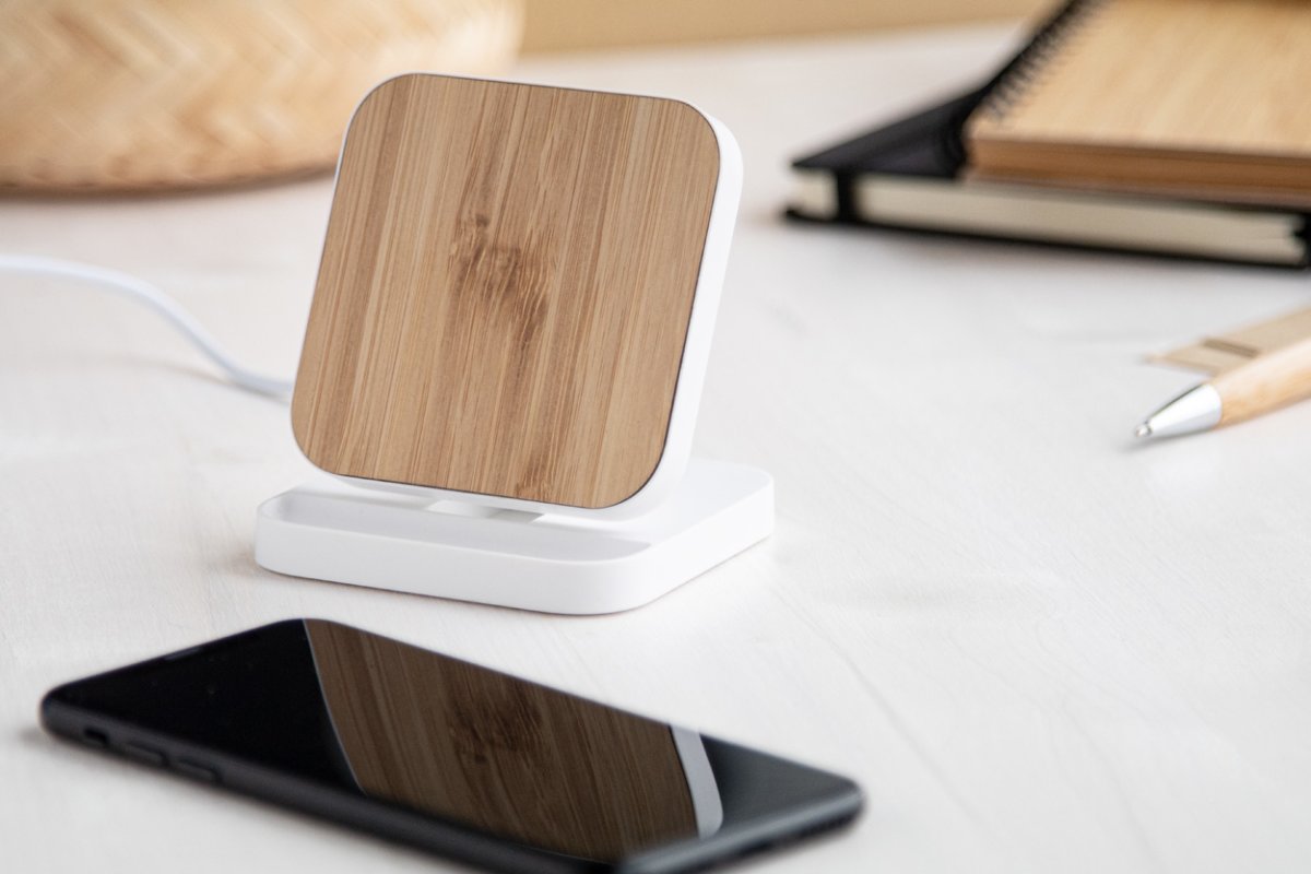 Rabso – uchwyt na telefon z ładowarką indukcyjną to nowoczesny gadżet 2 w 1, który łączy funkcję stabilnego stojaka z szybkim ładowaniem bezprzewodowym 15 W. Wykonany z solidnego, pochodzącego z recyklingu tworzywa ABS oraz wykończony eleganckim bambusem, idealnie wpisuje się w trend ekologicznych i estetycznych rozwiązań biurowych. Dostępny w dwóch atrakcyjnych wersjach kolorystycznych – naturalny i biały – z łatwością dopasuje się do każdego wnętrza i stylu pracy 😊.