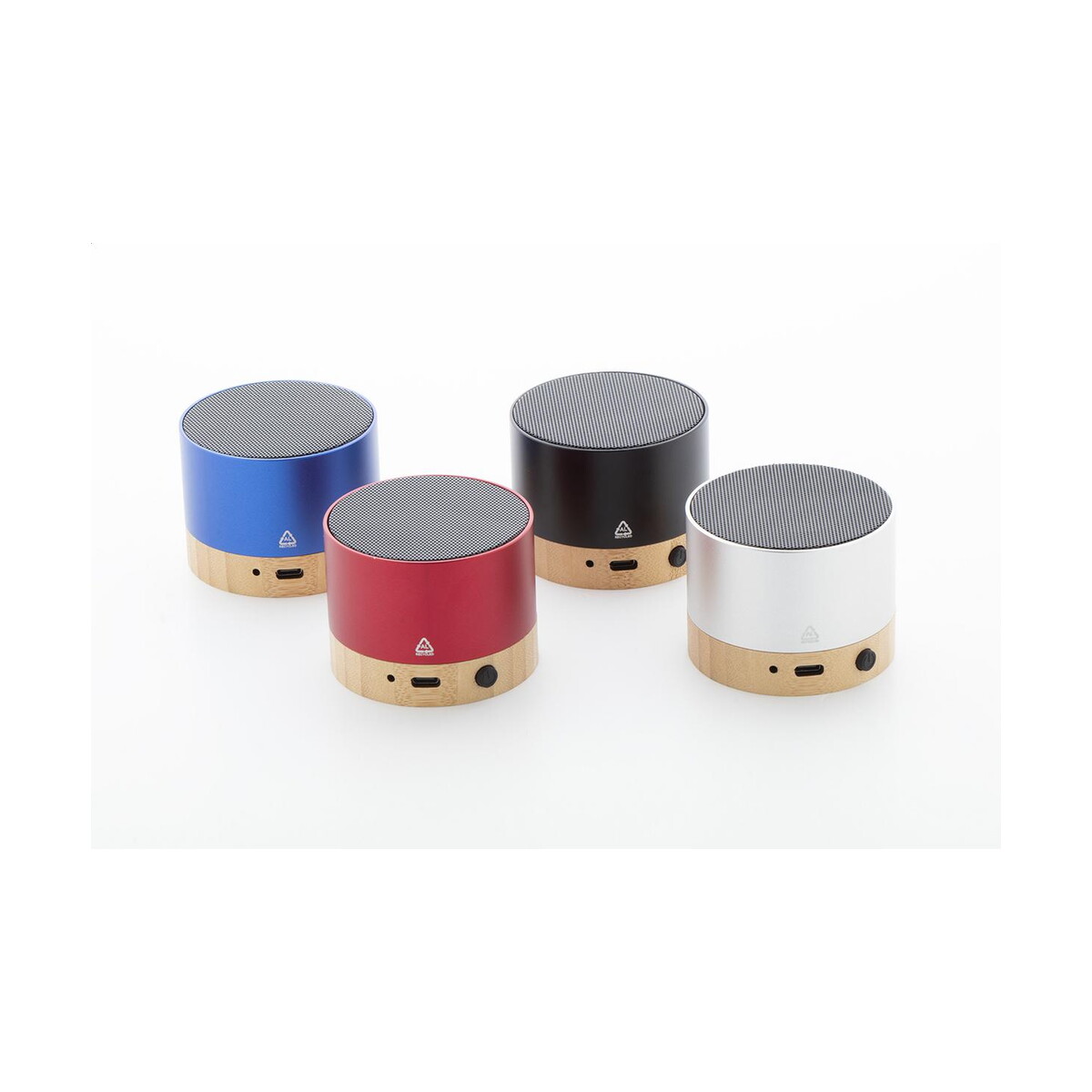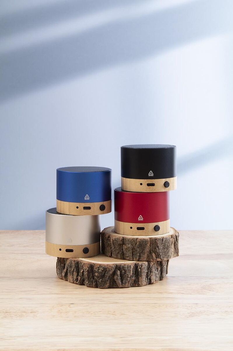 RalooBeat głośnik bezprzewodowy to znakomity, nowoczesny gadżet, który natychmiast przyciąga uwagę eleganckim designem i ekologiczną historią powstania. Wykonany z aluminium pochodzącego z recyklingu oraz naturalnej bambusowej podstawy, łączy wytrzymałość metalu z ciepłem drewna. Niewielkie wymiary ø68×55 mm i masa zaledwie 190 g sprawiają, że łatwo mieści się w kieszeni plecaka lub aktówki, a dzięki wbudowanemu akumulatorowi wydłuża czas słuchania muzyki nawet poza biurem czy domem. Logo wygrawerowane na chłodnej powierzchni aluminium oraz wyrazisty nadruk na bambusie tworzą efekt WOW, gdy wręczasz ten produkt klientom lub partnerom 🤩.
