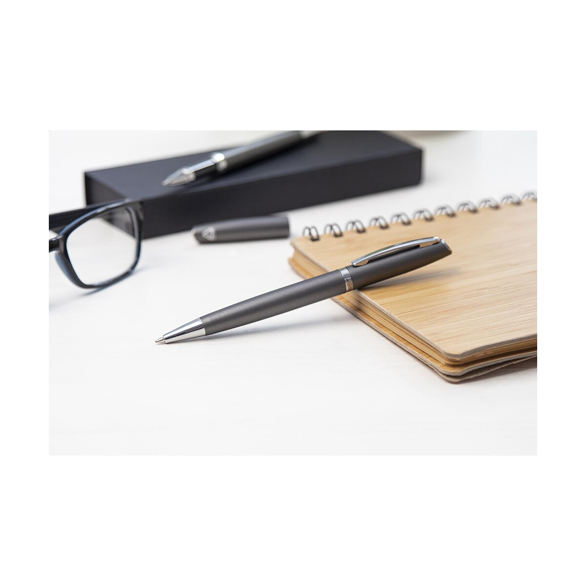 Redivi zestaw piśmienniczy to znakomita propozycja dla wszystkich, którzy szukają eleganckiego i funkcjonalnego upominku biznesowego. W stylowym pudełku z czarnego papieru kryje się pióro kulkowe oraz długopis wykonane z aluminium z recyklingu – materiału łączącego lekkość i trwałość. Dzięki wymiarom 176×58×22 mm i wadze zaledwie 65 g komplet jest niezwykle poręczny, co doceni każdy przedstawiciel handlowy, architekt czy menedżer działający w terenie. Niebieski wkład zapewnia czytelną linię pisma, a szeroka paleta kolorów – czarny, biały, szary, niebieski, czerwony – pozwala dopasować zestaw do identyfikacji wizualnej firmy 😊.
