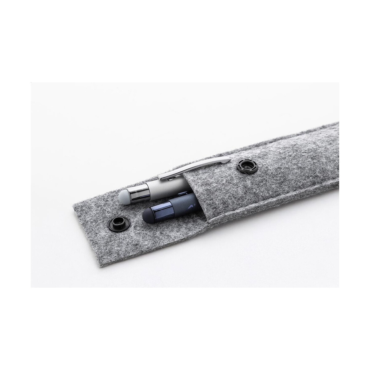 Guzikowe zapięcie skutecznie chroni dwie ulubione pióra lub długopisy, a gładka powierzchnia filcu zachęca do umieszczenia tu wyrazistego logo lub precyzyjnego nadruku. Dzięki temu Refelt Pen etui na długopisy RPET zmienia się w praktyczny nośnik treści reklamowych, który codziennie towarzyszy użytkownikowi w pracy, na uczelni czy w podróży. To niewielki, lecz zauważalny element, który przypomina o Twojej marce za każdym razem, gdy ktoś sięga po długopis.