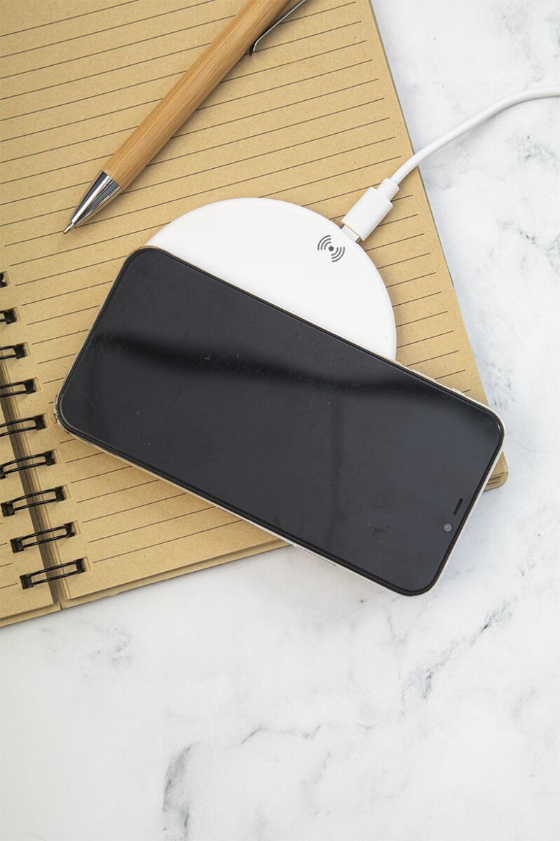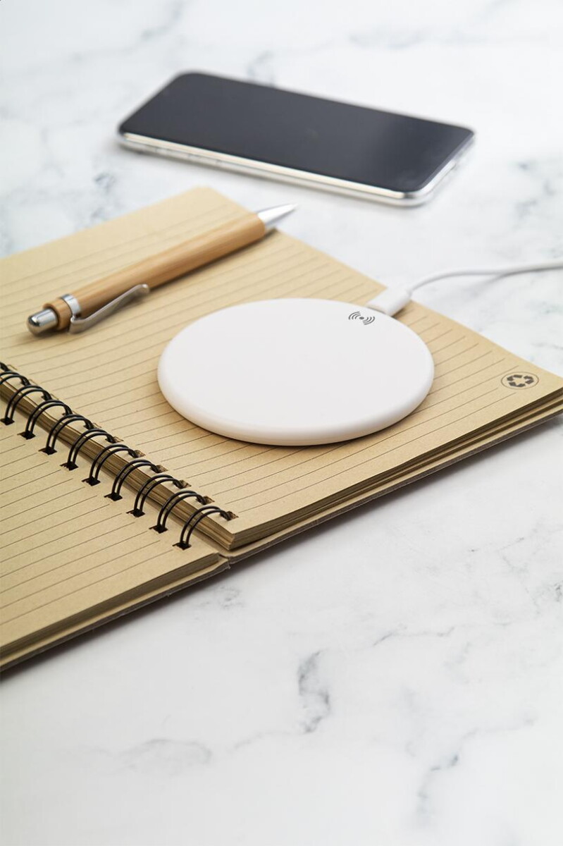 Renergy ładowarka indukcyjna RABS to nowoczesne, ekologiczne rozwiązanie, które łączy wygodę bezprzewodowego zasilania z troską o środowisko. Wykonana z ABS z recyklingu, o kompaktowych wymiarach ø98×7 mm i lekkiej konstrukcji 75 g, zmieści się na każdym biurku, recepcji czy szafce nocnej. Moc ładowania 15 W sprawia, że smartfon odzyskuje energię błyskawicznie, a dołączony przewód USB zapewnia pełną gotowość do pracy tuż po wyjęciu z opakowania. Neutralny biały kolor doskonale eksponuje umieszczone na obudowie firmowe grafiki 🙂