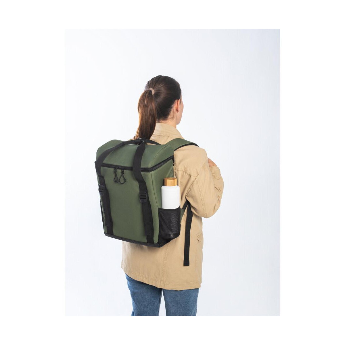 Model występuje w eleganckich kolorach: ciemnozielonym oraz granatowym, co otwiera szerokie możliwości personalizacji. Duże, gładkie powierzchnie przedniego panelu czekają na Twój nadruk lub logo, dzięki czemu plecak staje się nośnym materiałem reklamowym. To doskonały wybór dla branży turystycznej, firm z sektora spożywczego, producentów napojów, klubów fitness czy biur podróży – czyli wszędzie tam, gdzie świeżość i mobilność idą w parze. 🎒