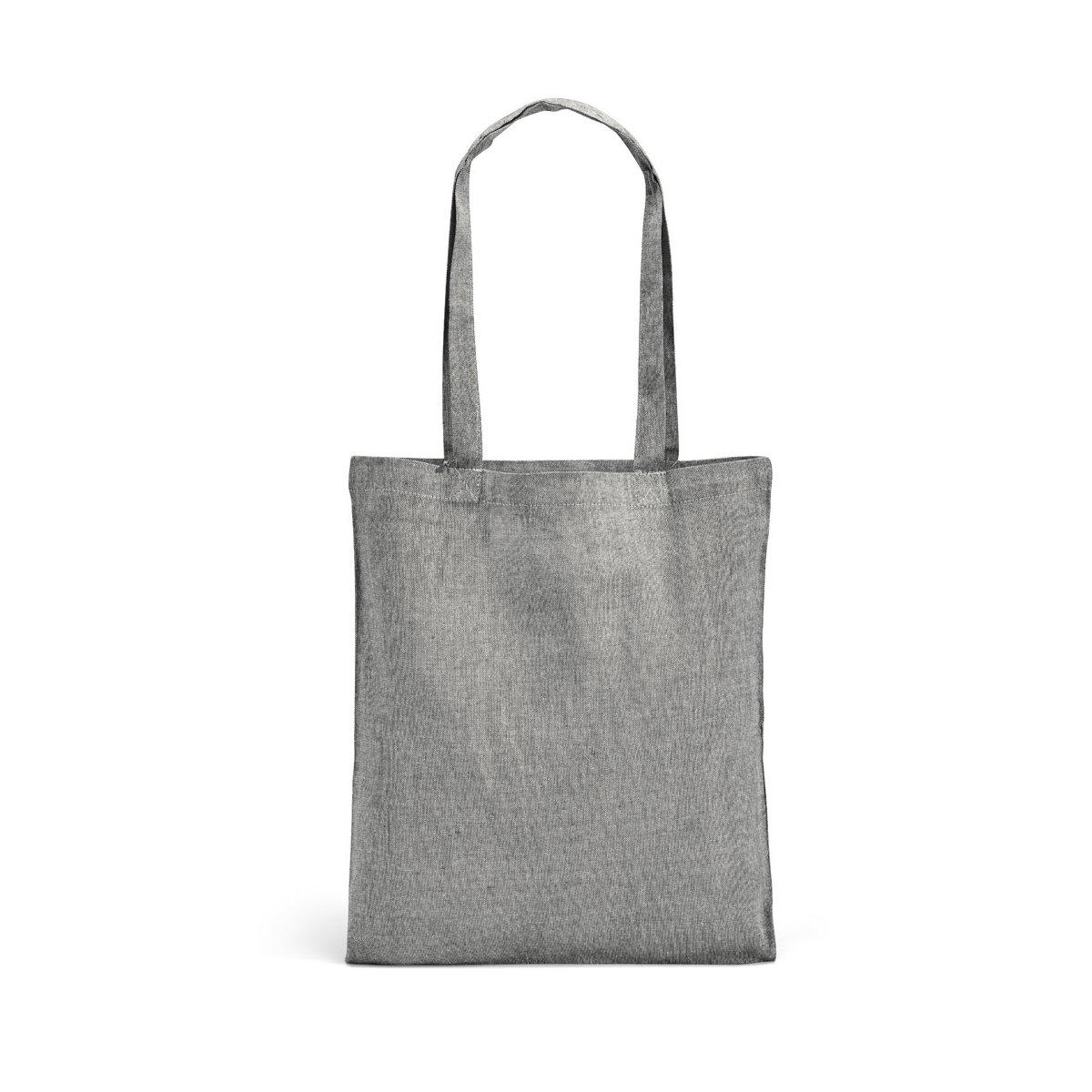 RYNEK. Torba zawierająca bawełnę z recyklingu to ekologiczny gadżet reklamowy, który w prosty sposób podkreśli prośrodowiskowe wartości Twojej marki 😊. Wykonana z bawełny pochodzącej z recyklingu o gramaturze 150 g/m², łączy lekkość z wysoką wytrzymałością, dlatego sprawdzi się zarówno podczas codziennych zakupów, jak i w drodze do pracy. Uniwersalny format 375 × 415 mm pomieści dokumenty A4, laptop, butelkę z wodą czy owoce z pobliskiego bazaru, a długie 65-centymetrowe uchwyty pozwalają wygodnie zawiesić torbę na ramieniu, pozostawiając wolne ręce na smartfon lub kawę.