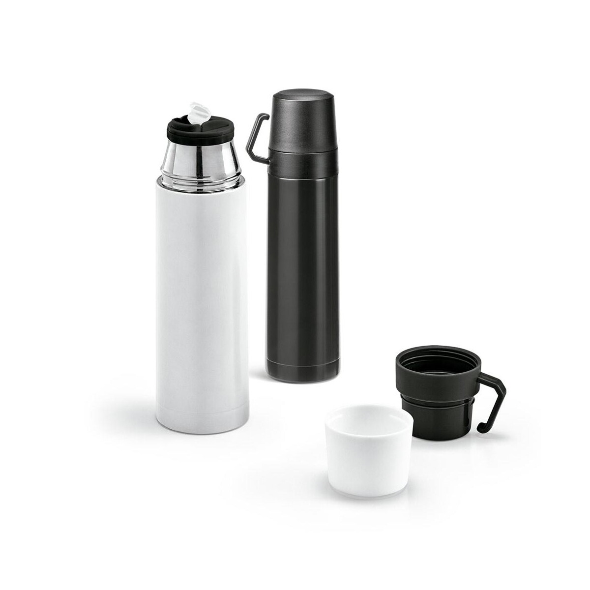 SAFE. Termos ze stali nierdzewnej i PP 490 ml to znakomity wybór, jeśli poszukujesz praktycznego prezentu reklamowego o wysokiej jakości wykonania. Dzięki podwójnym ściankom ze stali nierdzewnej i wytrzymałemu polipropylenowi napoje utrzymują swoją temperaturę przez długie godziny, a dołączony kubek pozwala delektować się kawą lub herbatą w każdym miejscu ☕. Pojemność 490 ml, wymiary ø68 × 247 mm, waga 320 g oraz możliwość wyboru eleganckiego czarnego lub białego koloru czynią ten produkt nie tylko estetycznym, ale i wygodnym w codziennym użytkowaniu. Dostarczany w schludnym opakowaniu, natychmiast gotowy, by dodać do niego Twoje firmowe logo.