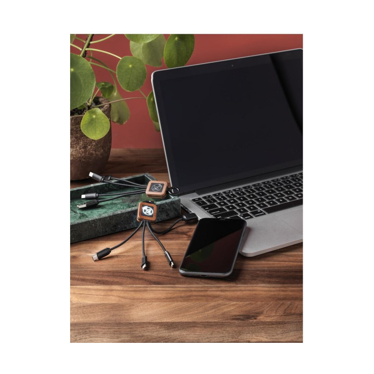 SCX.design C19 łatwy w użyciu kabel drewniany 20 W to znakomity, wielofunkcyjny gadżet, który wyróżni się w rękach Twoich klientów dzięki efektownemu, podświetlanemu logo 😊. Ten reklamowy kabel 3 w 1 współpracuje z urządzeniami wyposażonymi w złącza USB-C, micro USB oraz iPhone, co pozwala ładować aż trzy urządzenia jednocześnie z mocą 20 W. Wymiary 17 × 1,2 × 2,8 cm i masa zaledwie 24 g sprawiają, że zawsze znajdzie się na niego miejsce w plecaku czy torbie na laptopa.