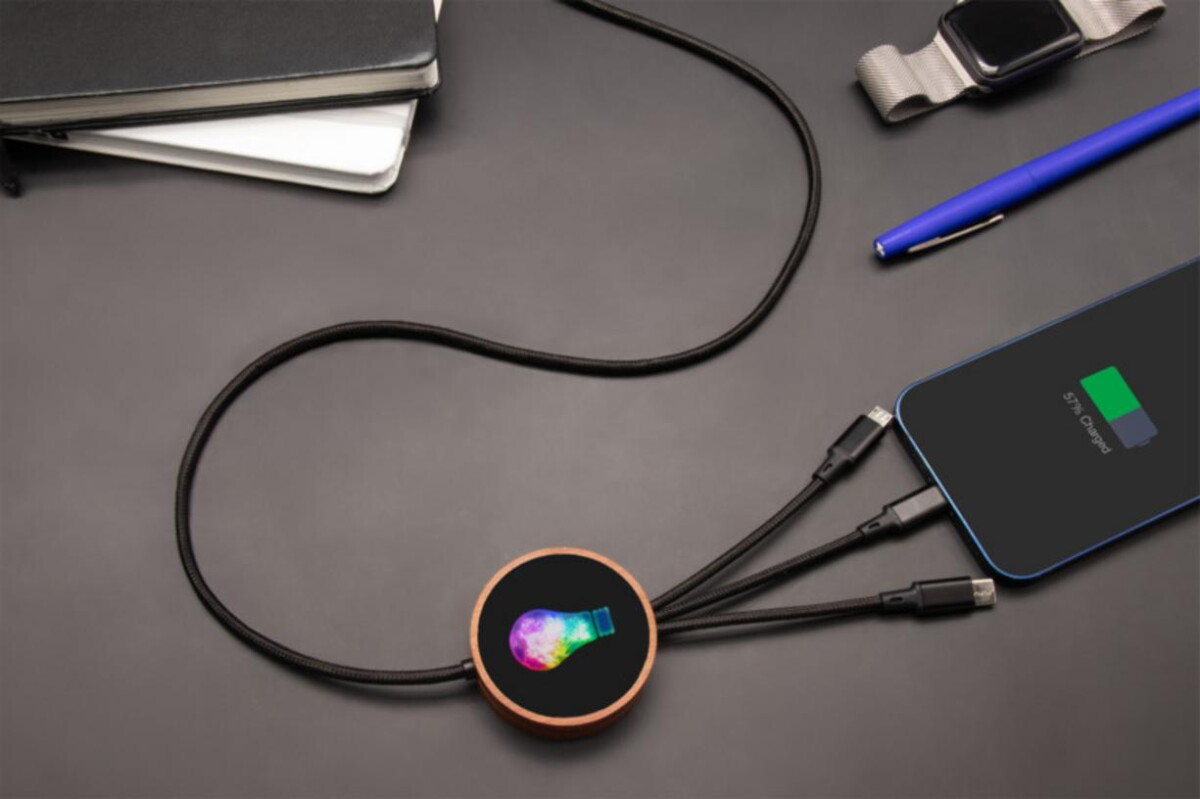 Waży zaledwie 50 g, ma długość 1 m i kompaktowe wymiary 100 × 1,4 × Ø 5,2 cm, dlatego łatwo mieści się w torbie czy kieszeni. To produkt stworzony dla Twojej firmy — perfekcyjny na targi, konferencje czy szkolenia jako ekologiczny upominek reklamowy. W branży IT, fintech, edukacyjnej, a nawet hotelarskiej będzie znakomitym wsparciem promocji. Można nim ładować telefon podczas prezentacji, w biurze klienta czy na stanowisku expo, demonstrując troskę o środowisko i nowoczesny design 🙂.