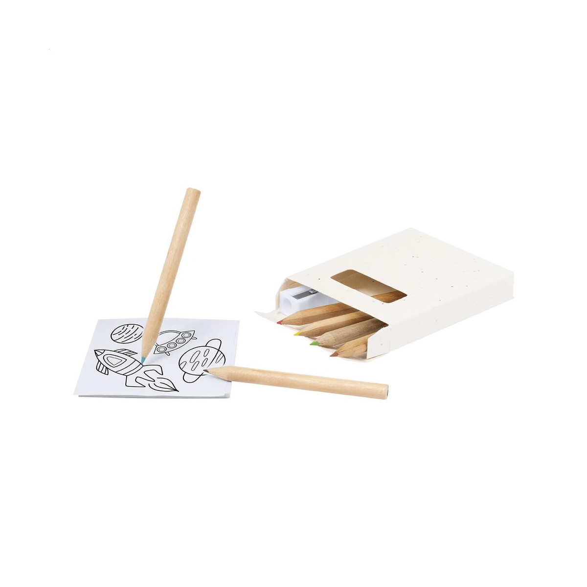 Cechy produktu: lekka konstrukcja (30 g), naturalne drewno, biodegradowalne pudełko z nasionami petunii, komplet 6 kredek + temperówka + kolorowanka 20 stron, neutralny kolor oprawy. Ta harmonijna fuzja użyteczności i ekologii to znakomity sposób, aby wyróżnić się na rynku i pozostać w pamięci klientów dla Twojej firmy. 🌱