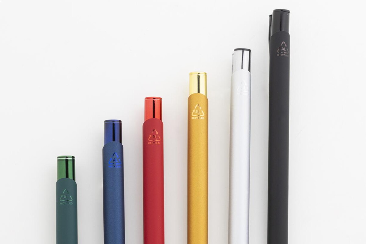 Shinnel długopis to nowoczesny, a zarazem elegancki gadżet, który natychmiast zwraca uwagę dzięki matowej, gumowanej obudowie i połyskującym, metalowym detalom w sześciu modnych kolorach: zielonym, niebieskim, złotym, czerwonym, srebrnym oraz czarnym. Korpus wykonany z aluminium z recyklingu waży zaledwie 14 g i ma długość 137 mm, co sprawia, że jest niezwykle poręczny. Dzięki specjalnej powłoce do lustrzanego grawerowania każdy nadruk lub logo prezentuje się tu perfekcyjnie, stapiając się kolorystycznie z metalowymi akcentami ✨.