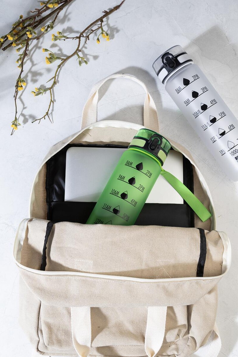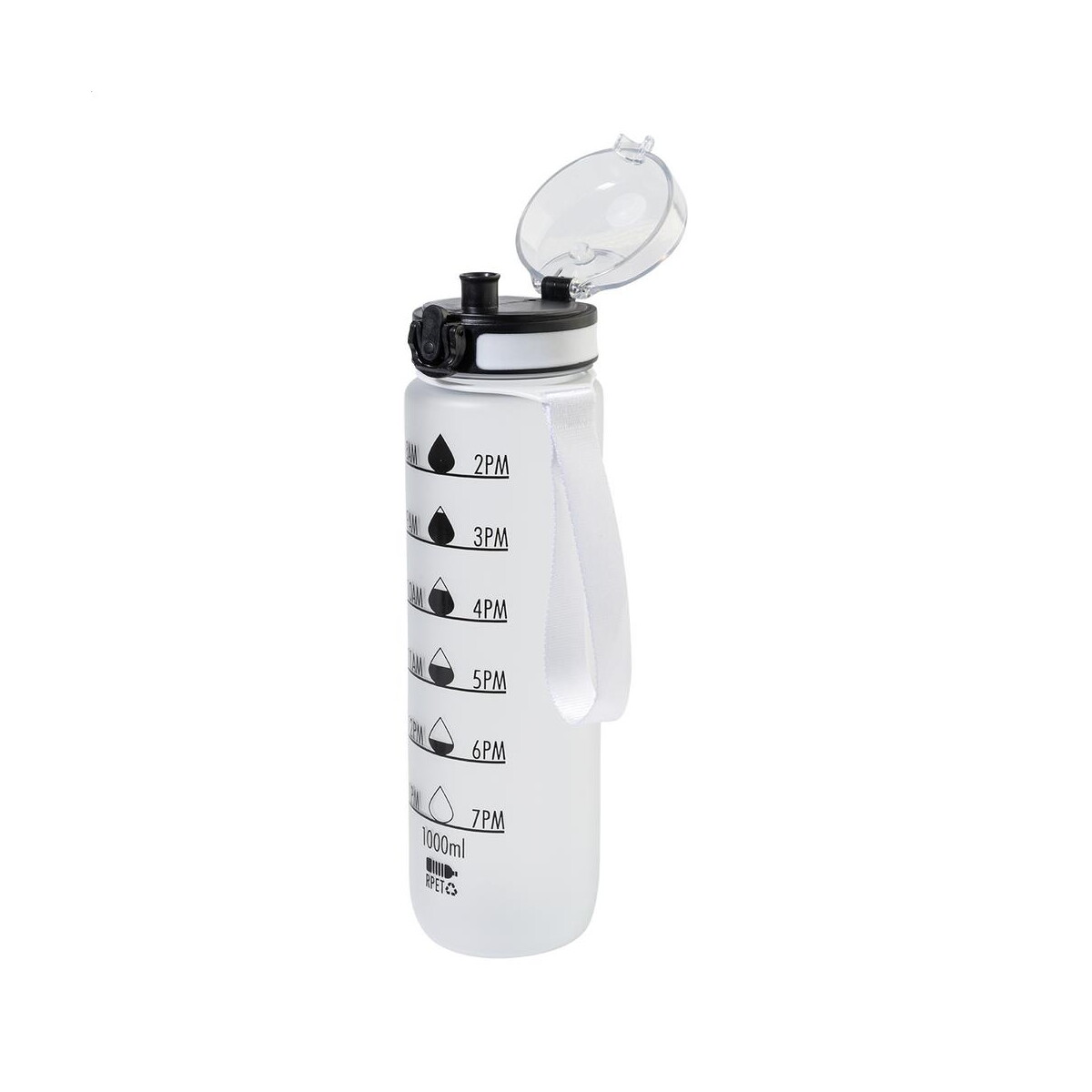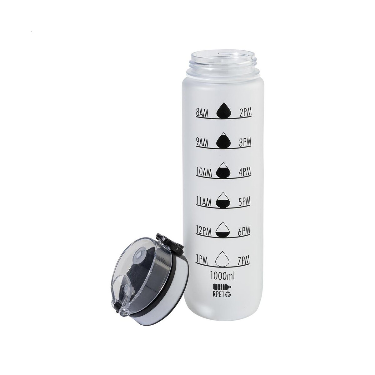 Cecha produktu: materiał RPET z recyklingu gwarantuje lekkość – jedyne 170 g – oraz wytrzymałość. Cecha produktu: pojemność 1000 ml pozwala zabrać solidną porcję wody na trening lub długi spacer, a cecha produktu: matowe wykończenie nadaje nowoczesny charakter. Na ściance znajduje się motywująca skala czasu i objętości, więc użytkownik łatwo kontroluje dzienne nawodnienie. 👉 Cecha produktu: automatycznie otwierana klapka z blokadą bezpieczeństwa chroni przed przypadkowym rozlaniem, natomiast cecha produktu: praktyczny pasek do noszenia ułatwia transport.