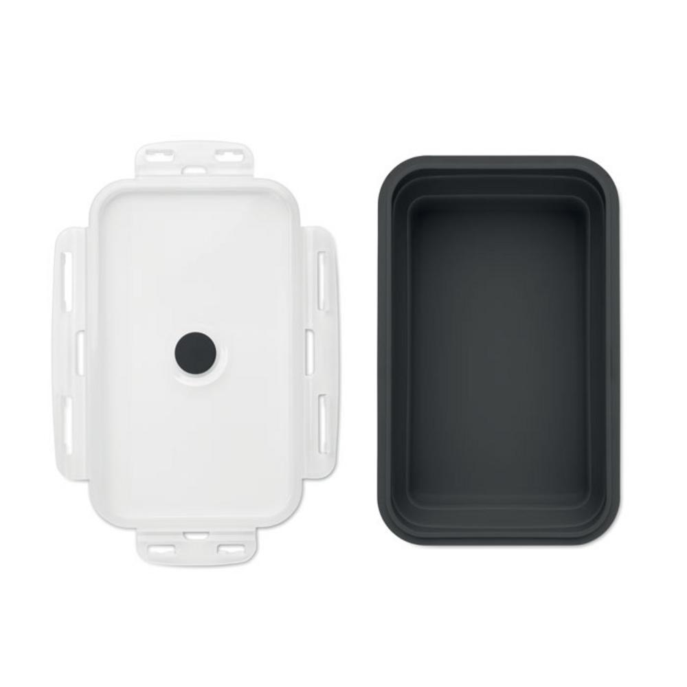 Składany silikonowy pojemnik na KOLAPSO to nowoczesny, wielofunkcyjny gadżet, który spełni oczekiwania nawet najbardziej wymagających użytkowników. Wykonany z elastycznego silikonu, po złożeniu zajmuje minimum miejsca, a rozłożony oferuje imponującą pojemność 1200 ml. Dzięki wymiarom 21 × 13 × 7 cm i wadze zaledwie 0,258 kg bez trudu zmieści się w torbie, plecaku czy szufladzie biurka. Pokrywka z PP z silikonowym zaworem gwarantuje szczelność oraz bezpieczne przechowywanie posiłków. Składany silikonowy pojemnik na KOLAPSO dostępny jest w trzech modnych kolorach: czarnym, błękitnym i ciemnoszarym, co ułatwia dopasowanie do identyfikacji wizualnej marki 🙂.