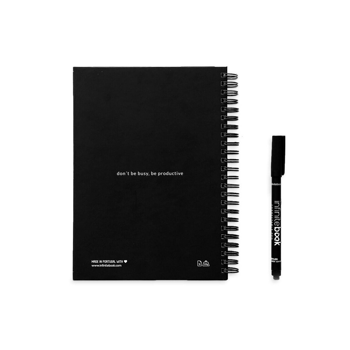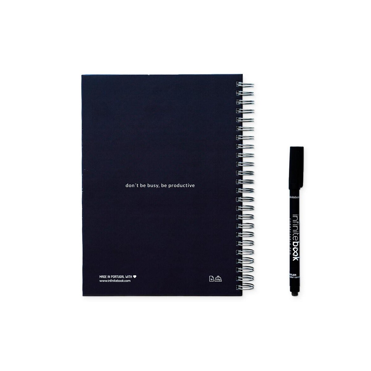 STARTER KIT INFINITE PLANNER A5 to prawdziwie wszechstronny, wielokrotnego użytku notatnik, który zmieni sposób, w jaki Ty i Twój zespół planujecie zadania 🙂. Cały STARTER KIT INFINITE PLANNER A5 obejmuje twardookładkowy „Infinite Diary” z solidnymi pierścieniami, pełny zestaw do czyszczenia (butelka z atomizerem, gąbka, ściereczka z mikrofibry), marker oraz praktyczny uchwyt na marker. Po zapisaniu notatek wystarczy spryskać, przetrzeć i – gotowe! Wszystkie strony są ponownie czyste, a dzięki aplikacji mobilnej możesz dodatkowo skanować ważne informacje i archiwizować je w chmurze. To doskonałe rozwiązanie dla firm, które chcą ograniczyć ilość zużywanego papieru i postawić na ekologiczne, trwałe materiały.