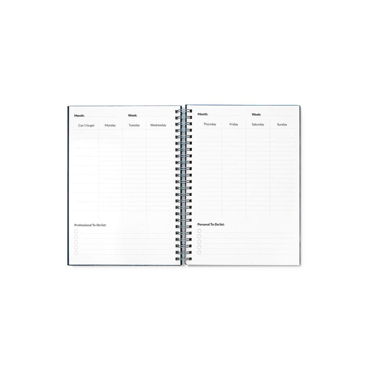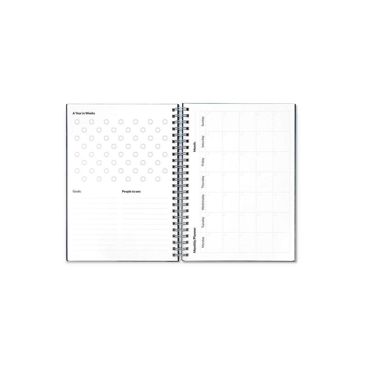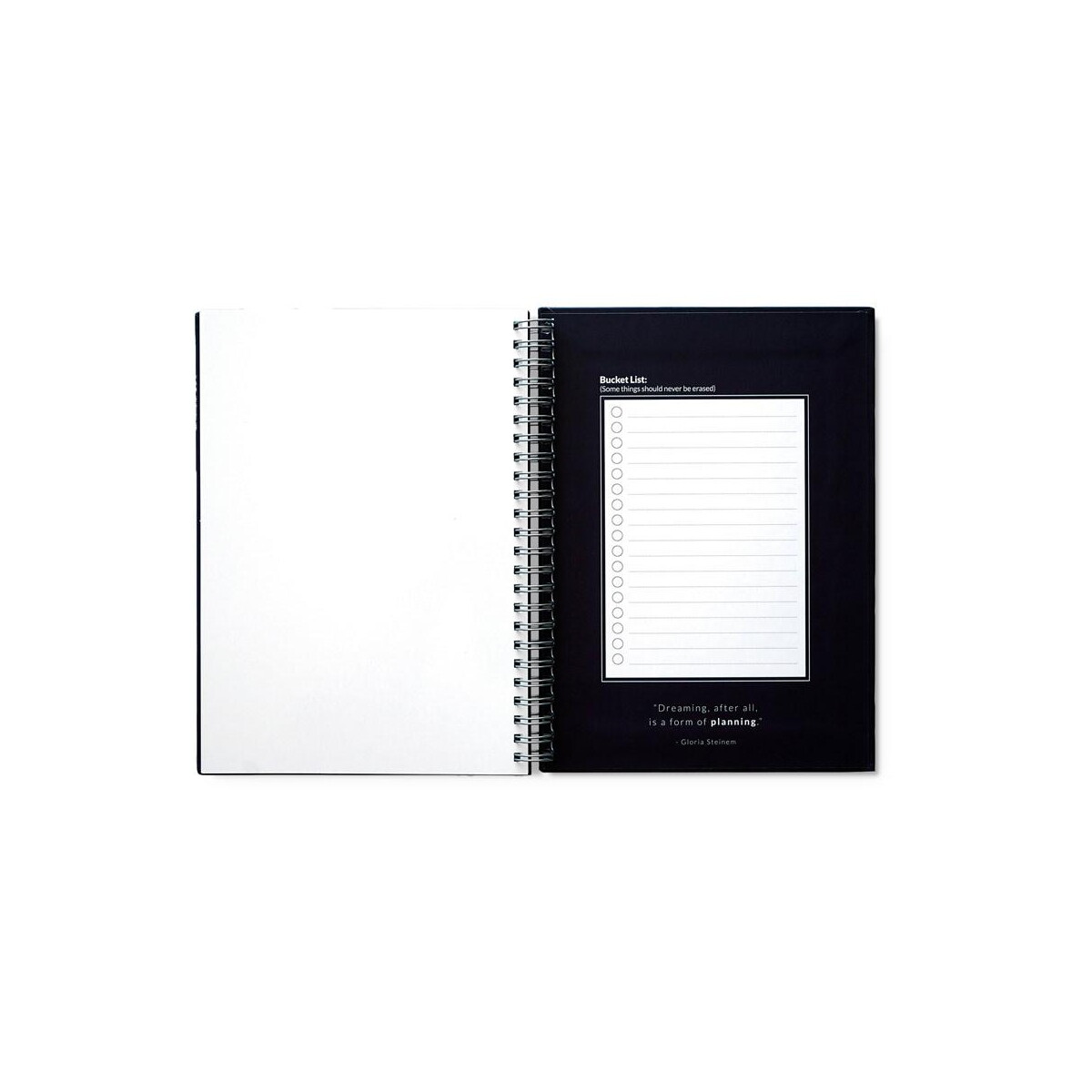 Produkt dostępny w kolorach granatowym i czarnym, co ułatwia dopasowanie do identyfikacji wizualnej Twojej marki. Wymiary notesu 148 × 210 mm, pudełka 225 × 175 × 46 mm, waga zestawu 458 g – wszystko to sprawia, że jest kompaktowy, a zarazem pojemny. Wymazywalne strony podzielone zostały na: 2 do szybkich zadań, 10 tygodniowych, 1 miesięczną, 1 roczną i 22 gładkie do notatek, co czyni planner perfekcyjnym narzędziem zarówno do pracy projektowej, jak i do codziennego planowania.