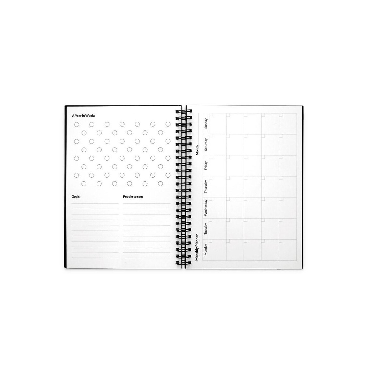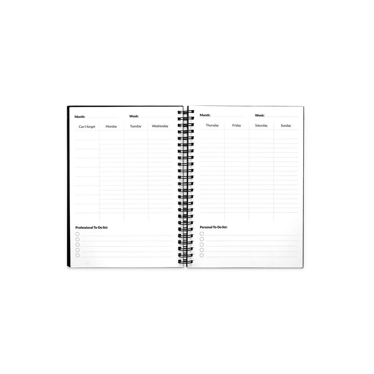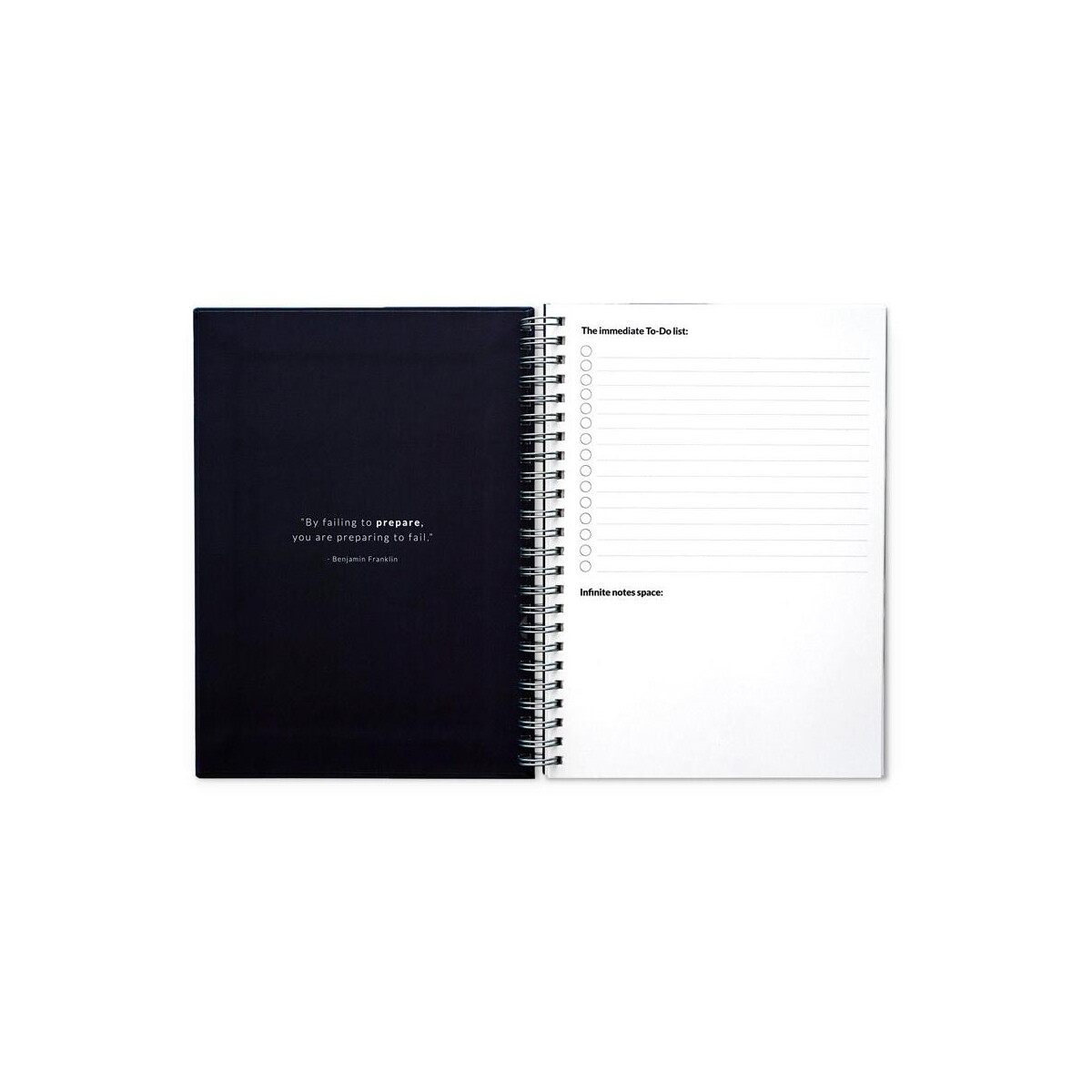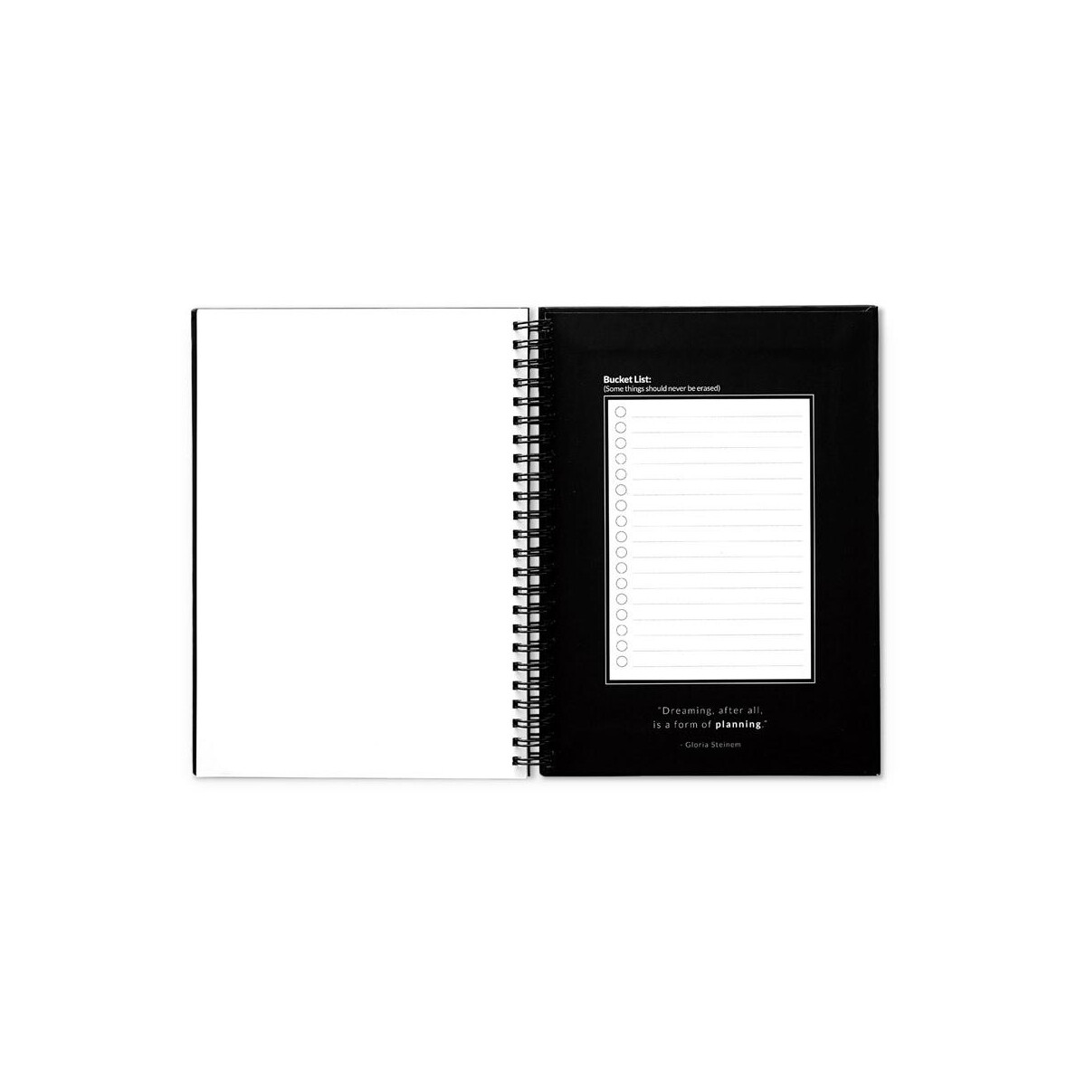 Produkt dostępny w kolorach granatowym i czarnym, co ułatwia dopasowanie do identyfikacji wizualnej Twojej marki. Wymiary notesu 148 × 210 mm, pudełka 225 × 175 × 46 mm, waga zestawu 458 g – wszystko to sprawia, że jest kompaktowy, a zarazem pojemny. Wymazywalne strony podzielone zostały na: 2 do szybkich zadań, 10 tygodniowych, 1 miesięczną, 1 roczną i 22 gładkie do notatek, co czyni planner perfekcyjnym narzędziem zarówno do pracy projektowej, jak i do codziennego planowania.