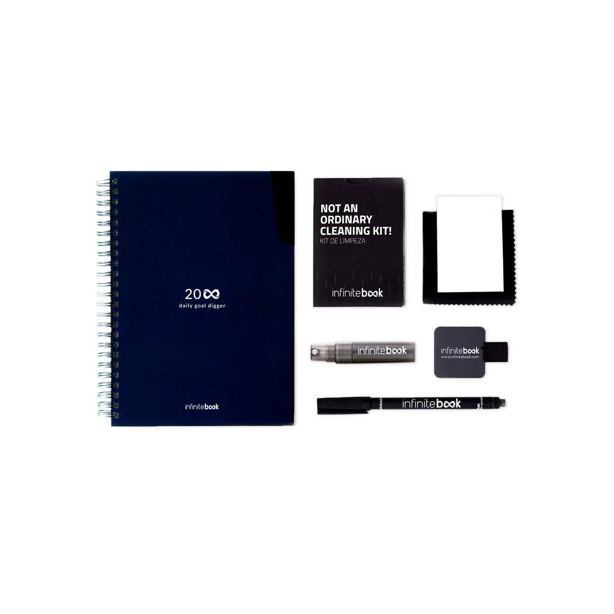 STARTER KIT INFINITE PLANNER A5. Zestaw zawiera „Infinite Diary”, zestaw do czyszczenia, marker i uchwyt na marker