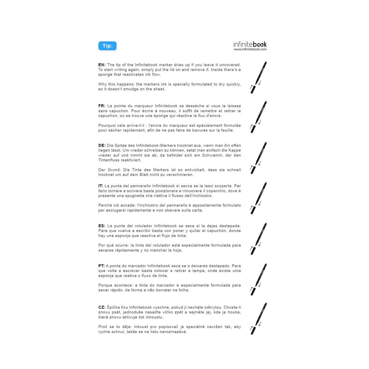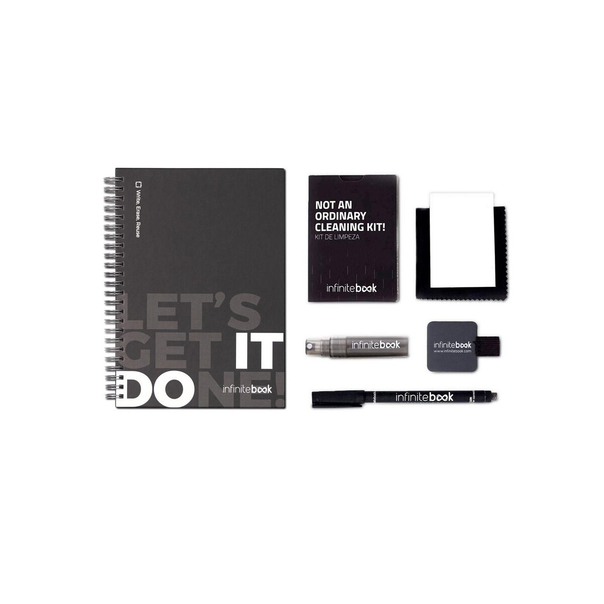 STARTER KIT INFINITEBOOK. Zestaw „Infinitebook” w twardej oprawie, 1 zestaw do czyszczenia, 1 marker i 1 uchwyt na długopis