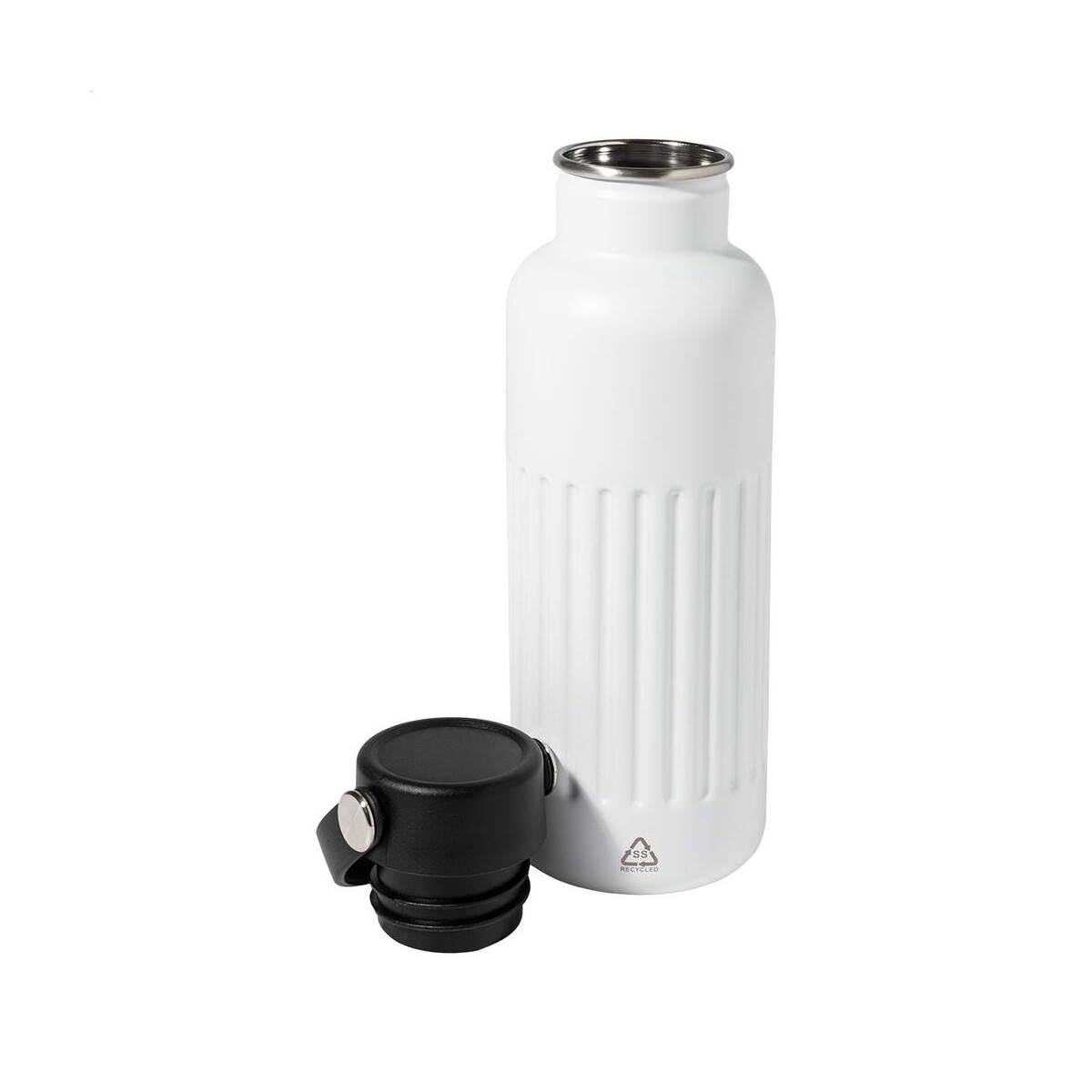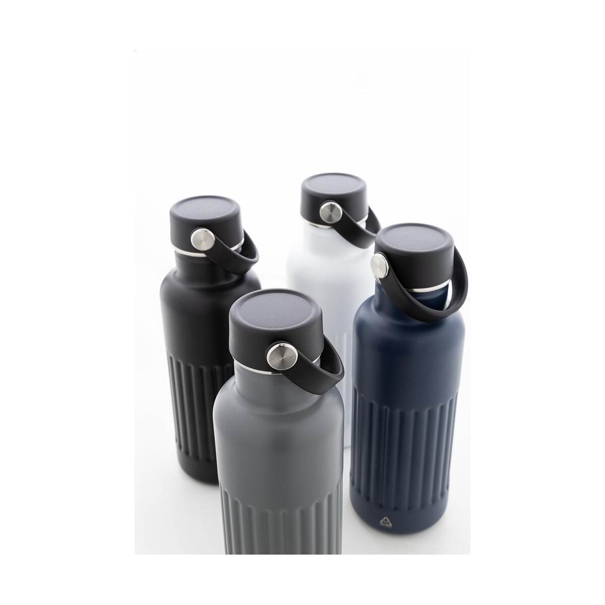 Dostępność czterech modnych kolorów – ciemnoszarego, ciemnoniebieskiego, czarnego oraz białego – pozwala dopasować ten produkt do identyfikacji wizualnej każdej organizacji. Matowa powierzchnia ułatwia chwyt, a przy tym stanowi świetne tło pod reklamowe grafiki. Co więcej, wykorzystanie materiałów z odzysku wpisuje się w aktualne trendy eco, dzięki czemu butelka podkreśli prośrodowiskowy charakter dla Twojej firmy 🌿.