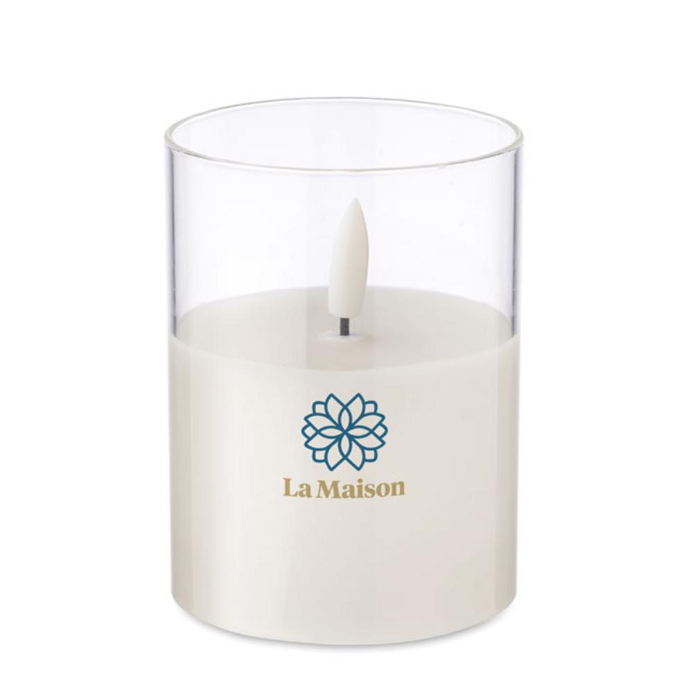 Parametry produktu: Wymiary: ø7,5 x 10 cm, Waga: 0,225 kg, Materiał: glass, Kolor: biały. Kompaktowe rozmiary sprawiają, że świeca zmieści się zarówno na stoliku kawowym, jak i na firmowym recepcyjnym blacie. Niewielka waga ułatwia transport i dystrybucję podczas akcji promocyjnych czy wysyłki prezencików do e-commerce.