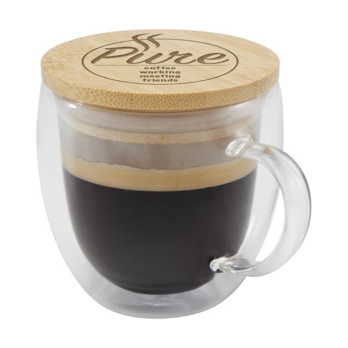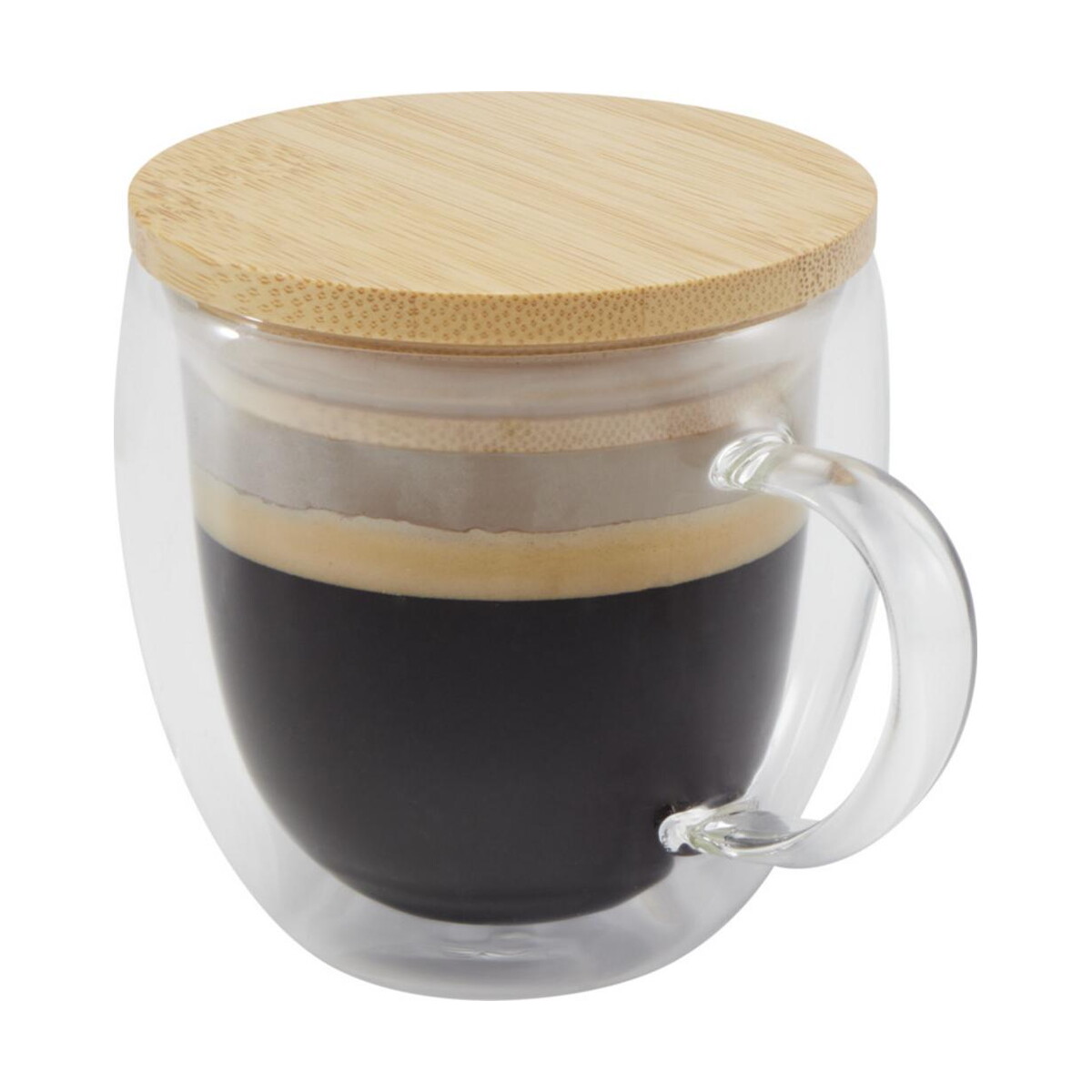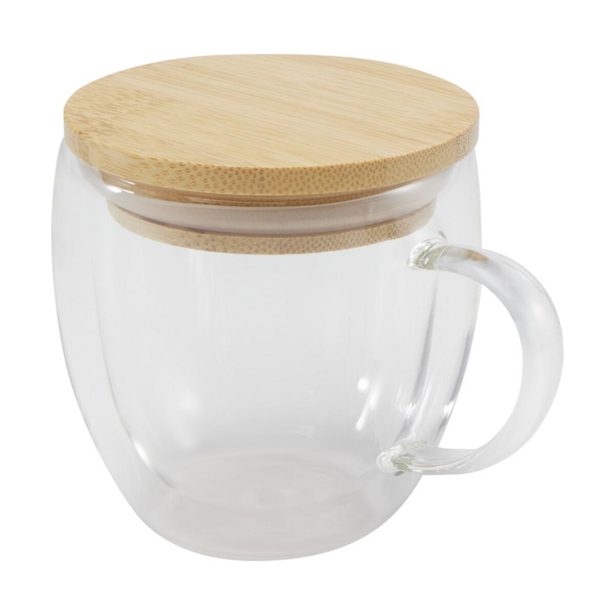 Szklany kubek Lenora z bambusową pokrywką o pojemności 250 ml