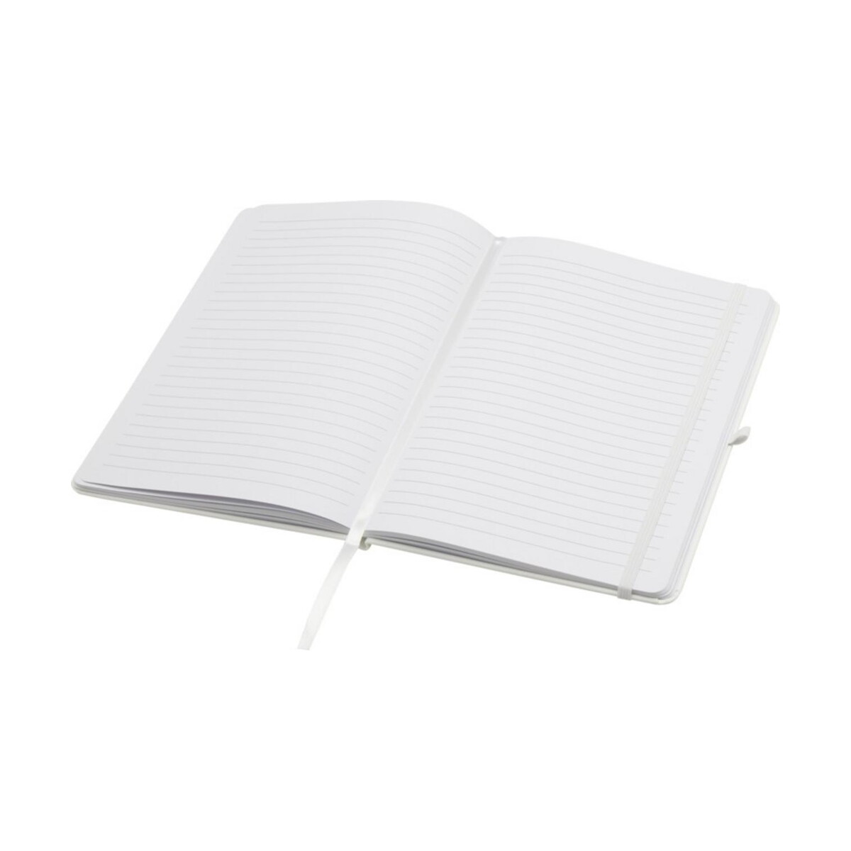 Dzięki gładkiej powierzchni okładki Teak notatnik A5 z twardą okładką z materiałów z recyklingu i stronami w linie jest wręcz stworzony pod nadruk lub logo. Taki personalizowany gadżet reklamowy będzie doskonały dla Twojej firmy z sektora edukacyjnego, finansowego, IT, a także dla agencji kreatywnych czy kancelarii — wszędzie tam, gdzie codziennie powstają nowe pomysły. To świetny upominek na targi branżowe, konferencje i szkolenia, który wzmocni rozpoznawalność marki i sprawi, że klienci będą pamiętać o Twojej ofercie.