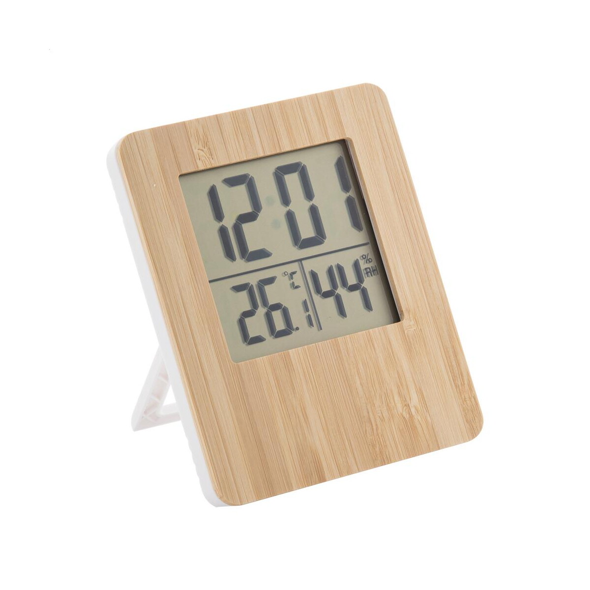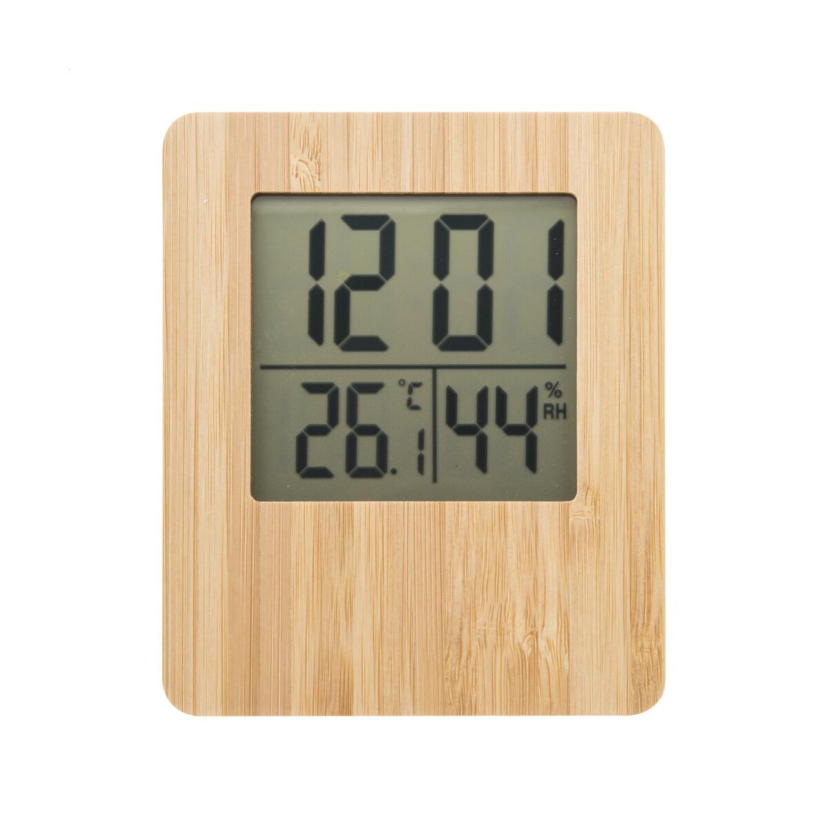Tenkebo stacja pogodowa to nowoczesny, a zarazem naturalny akcent biurka lub recepcji, który zachwyci każdego miłośnika funkcjonalnego designu. Front z bambusa o wymiarach 99×15×120 mm i wadze zaledwie 133 g sprawia, że urządzenie jest lekkie, ekologiczne i przyjazne dla środowiska. Wbudowane budzik, kalendarz, termometr oraz wyświetlacz wilgotności gwarantują kompletną kontrolę nad warunkami wewnątrz pomieszczenia. Dzięki zasilaniu na dwie baterie AAA (dołącz je do zestawu promocyjnego, aby zwiększyć atrakcyjność upominku) to prawdziwie przenośny gadżet 🙂
