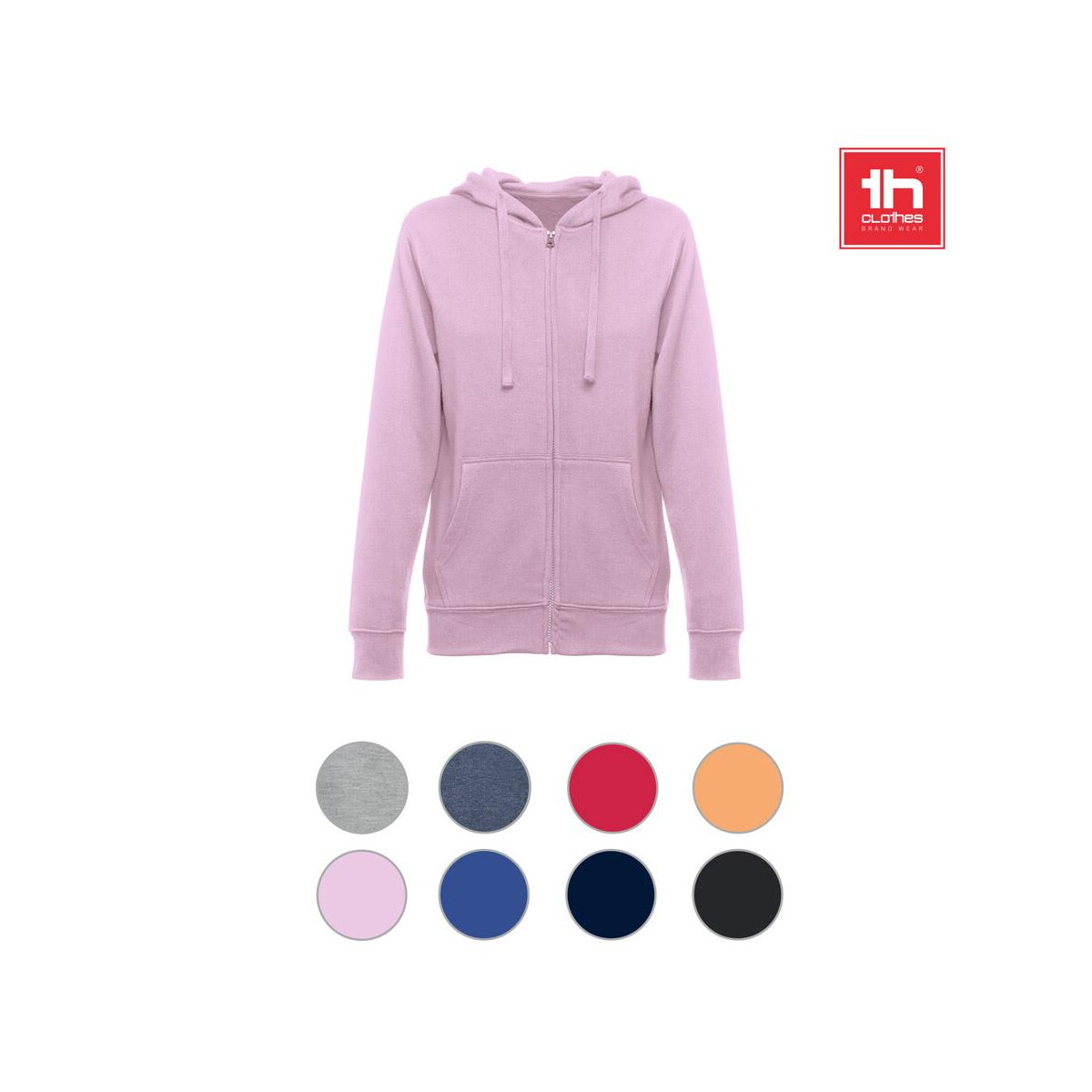 THC AMSTERDAM WOMEN. Bluza damska z bawełny i poliestru jest świetnym wyborem dla Twojej firmy, która chce podkreślić troskę o komfort klientek i pracownic. Sprawdzi się jako upominek reklamowy dla uczestniczek konferencji, jako część firmowego dress-code’u w biurach typu open space, a także jako wyposażenie hostess, trenerek czy promotorek w plenerze. Uniwersalne rozmiary S–XXL pozwalają łatwo dobrać idealne dopasowanie dla każdej sylwetki.