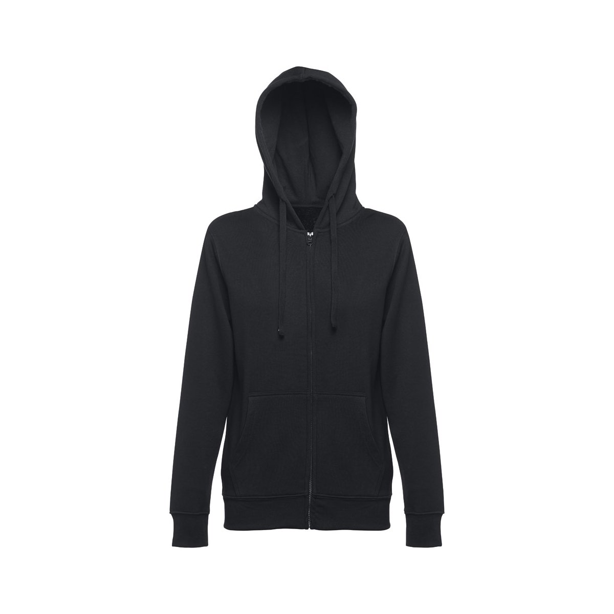Damska bluza z kapturem zapinana na suwak. 50% bawełna i 50% poliester (320 g/m²) ze zgrzebnym wnętrzem. Kaptur jest podszyty i posiada kolorowy sznurek do ściągania. Bluza ma 2 kieszenie kangurkowe i kryty plastikowy zamek błyskawiczny. Fason ze ściągaczami przy mankietach i na dole